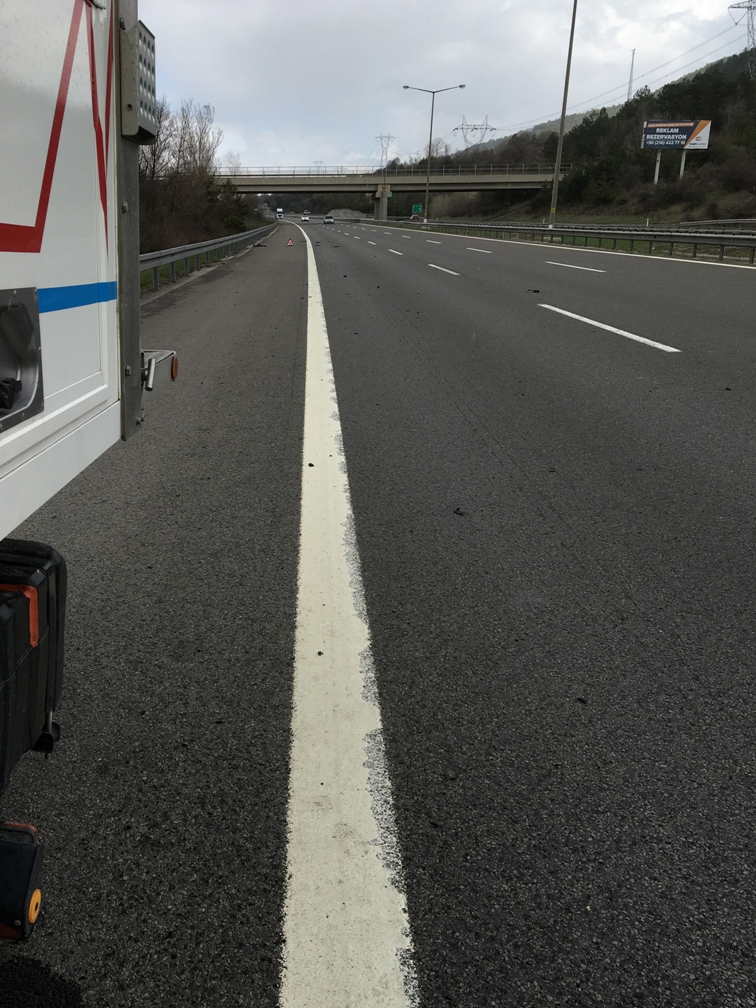 Les routes principales en Turquie sont vraiment bonnes. Nous avons pu rouler à bonne allure sur l’autoroute. Enfin, bonne allure, pour Bidouille c’est 80 kms/h ! Mais entre Gerède et Bolu le pneu arrière gauche a explosé. Drôle de sensation !!! Décidément, on cumule…. Le voyage au long cours n’est pas un long fleuve tranquille.