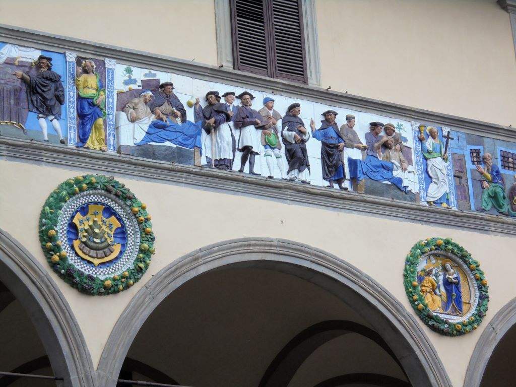 Nous avons commencé par le Spedale del Ceppo, un hôpital fondé en 1277. La loggia extérieure est agrémentée d’une frise magnifique en céramique qui date de 1530.
