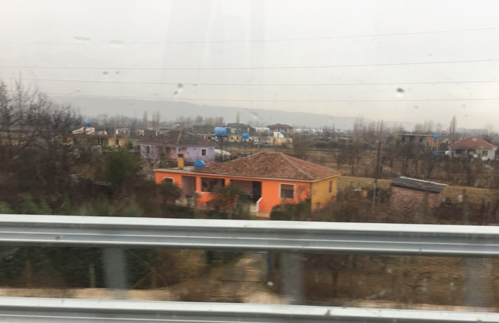 La route entre Podgorica et Shkodër est monotone. Tout est blanc mais sans soleil. Beaucoup de friches industrielles, de décharges sauvages, de bâtiments inachevés. C’est tristounet. La conduite albanaise est une spécialité locale qui fait grimper en flèche votre risque d’infarctus. Les lignes blanches ne servent qu’à la déco, les limitations de vitesse doivent concerner les zombis, les piétons sont suicidaires et les deux roues doivent certainement prier une Madone avant de partir le matin. Moi qui suis pétocharde en voiture, j’ai beaucoup prié.