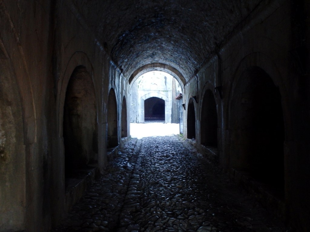 Surplombant le camping, un château. THE château. Vous ne verrez que peu de photos, comme une bleue, j’ai emmené un appareil à la batterie vide grrrr. Ce château est immense. Les débuts sont de 1600 av JC et encore dans les années 80, des soldats vivaient dans le château.