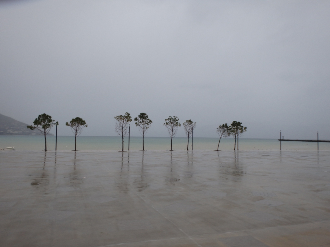 Station balnéaire très réputée, Vlorë ressemble … à une station balnéaire ! 🙂 mais à l’albanaise. Façades sur mer modernes et propres mais rues secondaires … En même temps, on ne s’est pas trop promené. Il tombait des trombes d’eau.