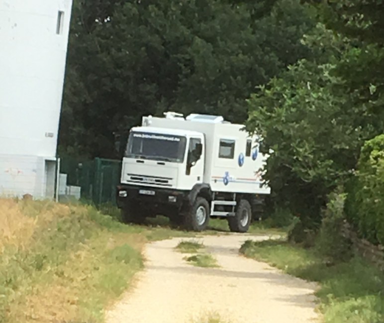 Au mois d’août 2017, nous avions emménagé dans « Tiposs », un fourgon aménagé dans lequel nous avons vadrouillé 10 mois. Nous l’avons revendu en mai 2018 et avons attendu notre camion, installés dans un mobilhome à proximité du constructeur, pour surveiller de TRES près les travaux de finition.