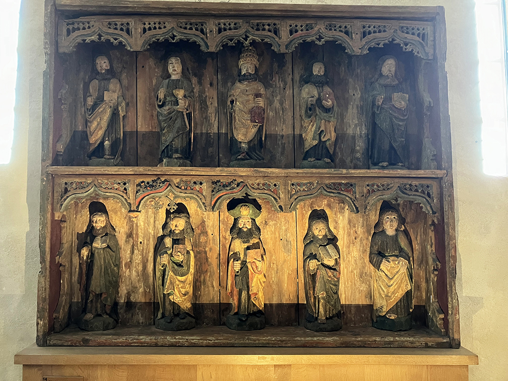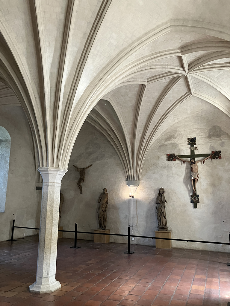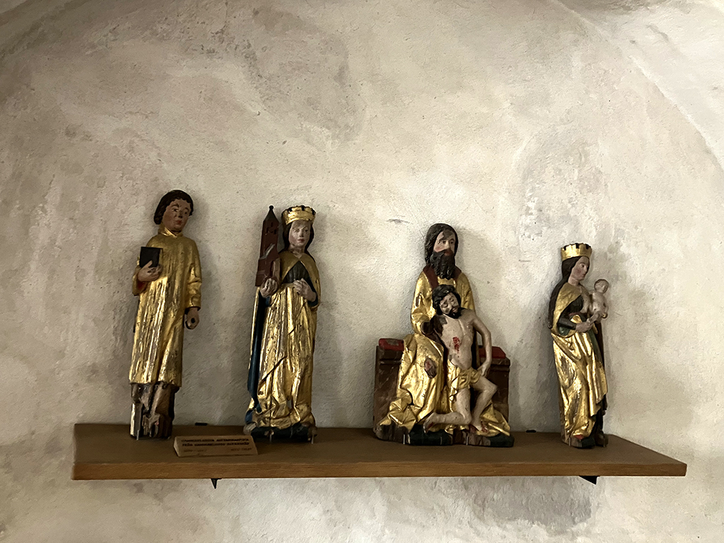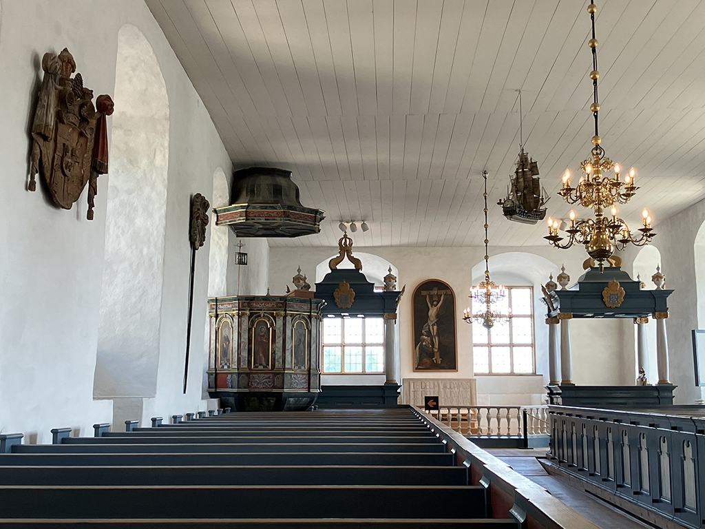 Un autre lieu réputé est l’église de la Sainte Croix. J’ai essayé d’en retracer l’histoire mais les traductions par ordinateurs donnent parfois des textes décalés ou abscons. Plutôt que dire des âneries, je ne dirai rien. L’église actuelle a été consacrée le 14/9/1512, catholique et est devenue luthérienne en 1640. La chaire est un exemple Renaissance de sculpture sur bois . Les peintures autour du chœur sont médiévales. L’orgue date de 1784 et le lustre de 1648. Le triptyque a été fabriqué en Prusse en 1140 environ.