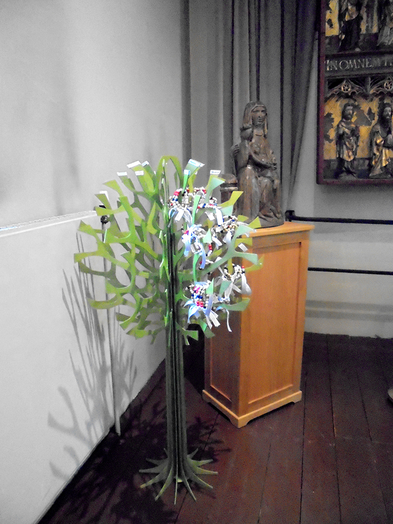 De petits bracelets sont accrochés en offrandes. Baptême, mariage ?