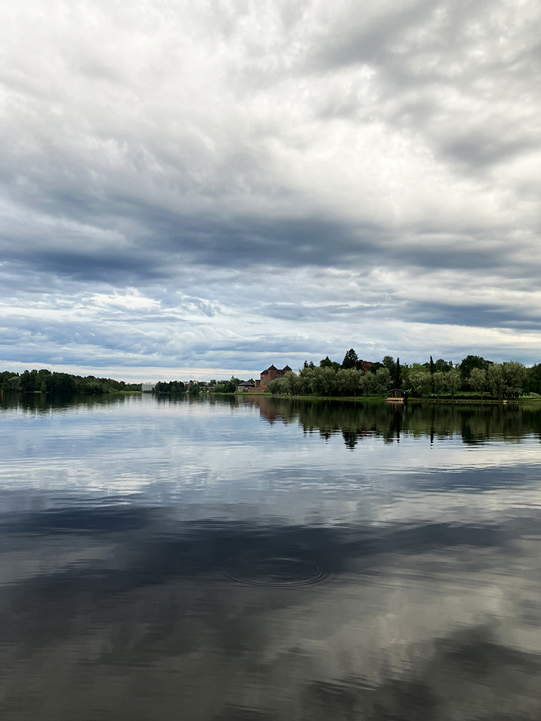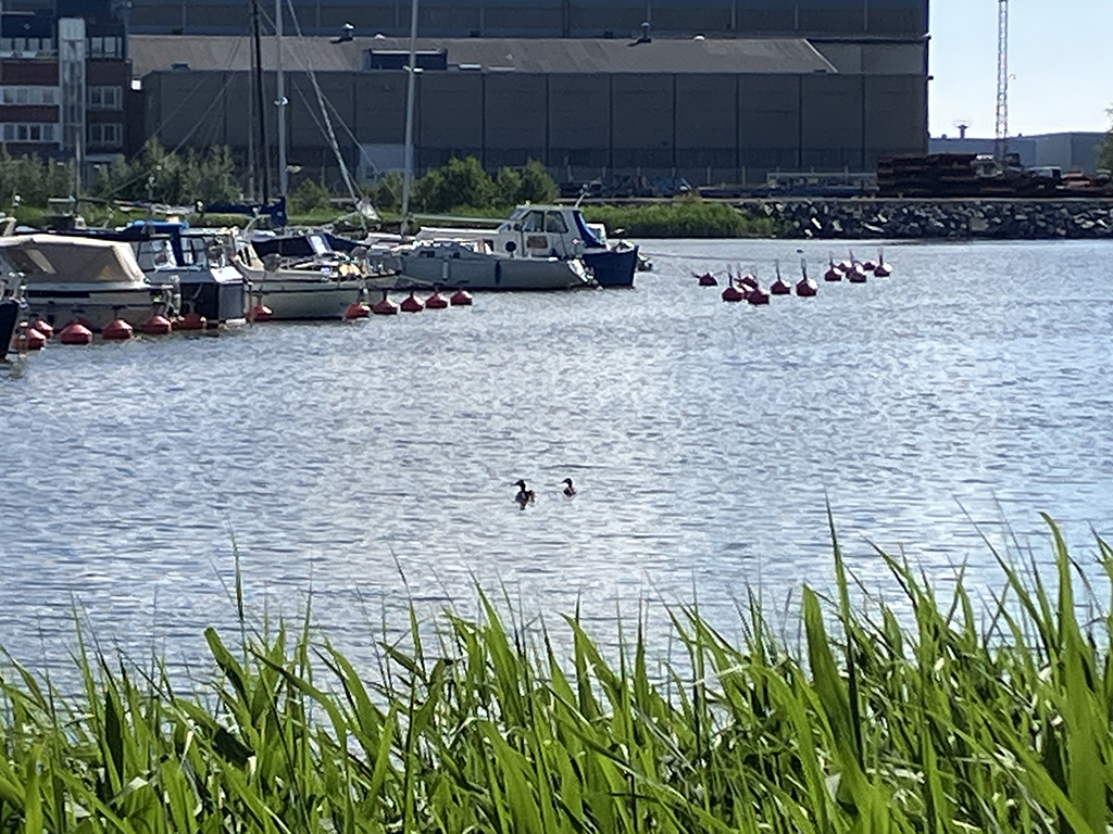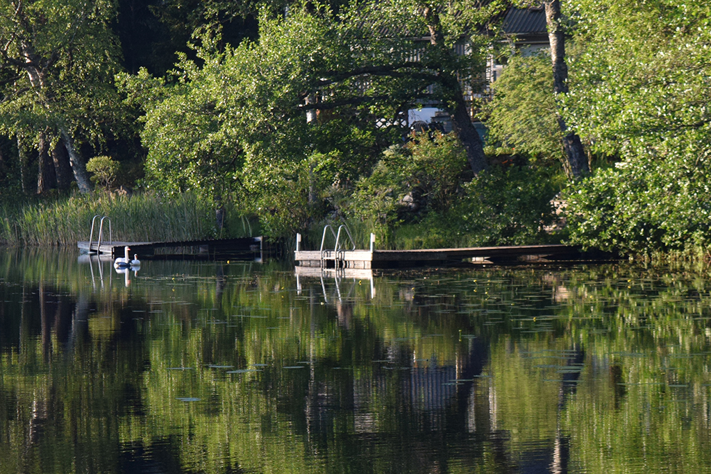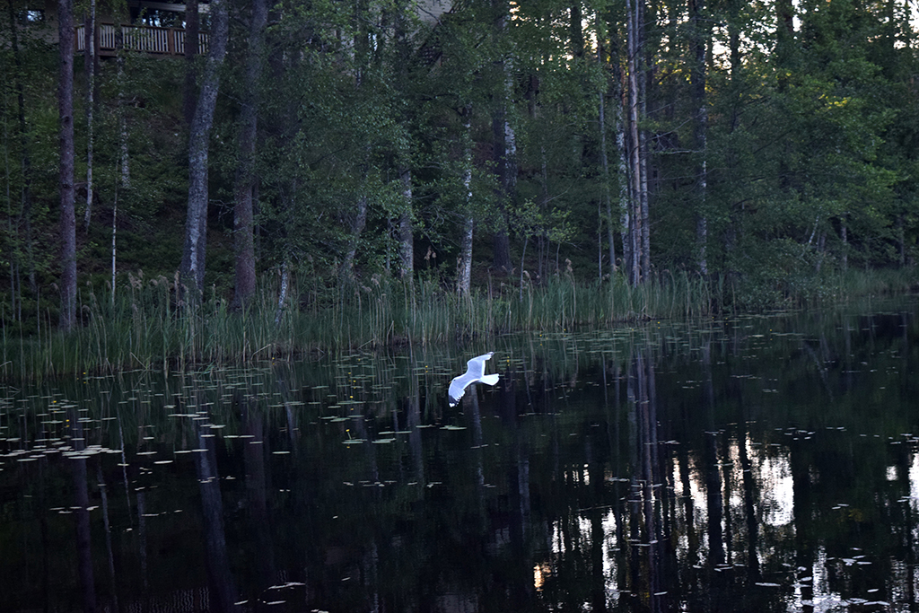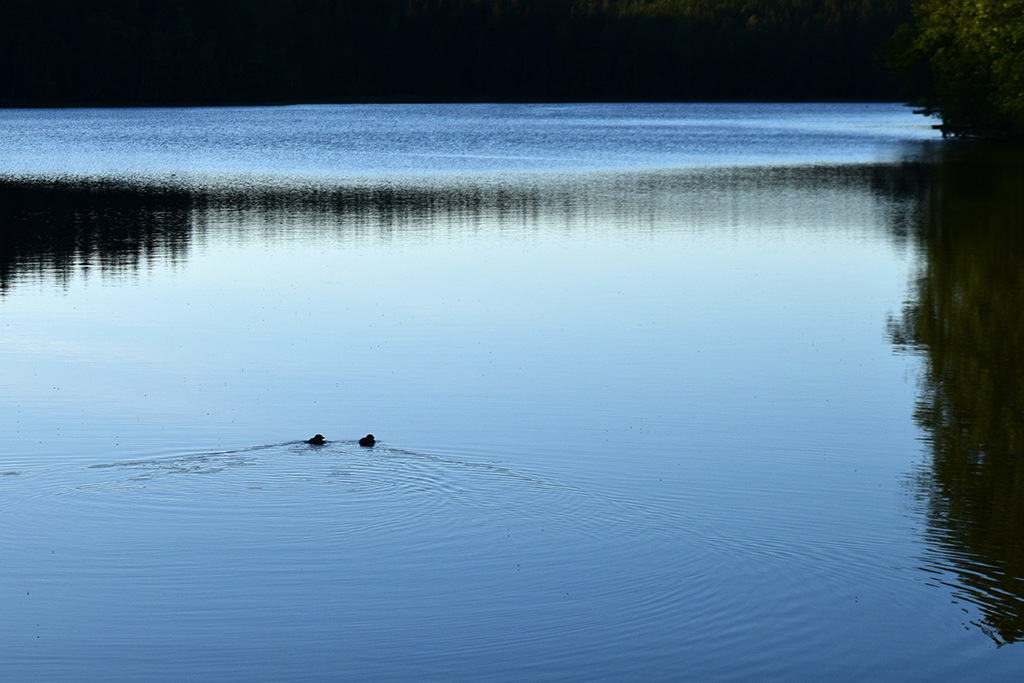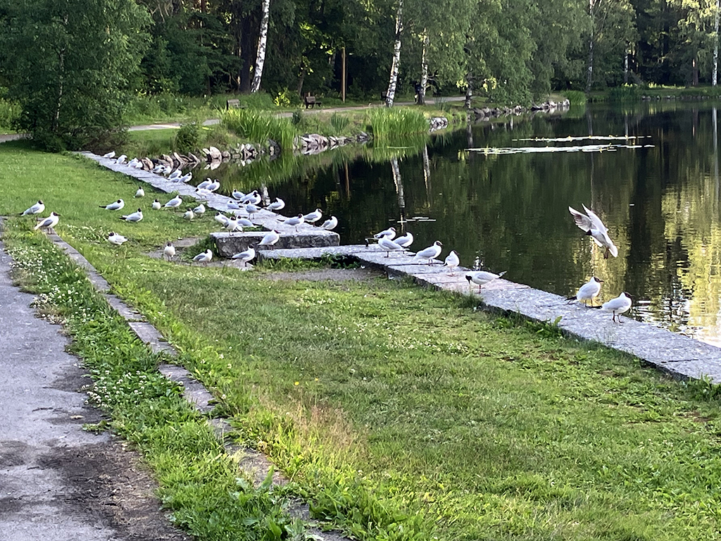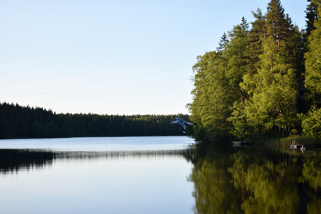 Ne pouvant rester plus de 24h sur notre site précédent, nous avons quitté Helsinki. Nous avons choisi un parking dans un parc national, au bord d’un lac. Le soir, en se promenant sur une jetée, nous nous sommes fait attaquer par des mouettes. Pas trop dangereuse l’attaque, sauf lors du lâché de fiente 🙂 Leurs petits étaient sous la jetée et ils avaient la taille d’un poussin ! Plus loin, un cygne et son petit restaient bien immobiles. Nous avons quitté la jetée pour laisser ce petit monde tranquille. Nous nous sommes baignés le lendemain matin sans problème. Dans la soirée, des Finlandais nous ont invités à boire un verre de vin chez eux. Un couple de 76 ans, Paola et Marco, qui parlait un peu anglais. C’était très sympa et parfaitement inhabituel pour des Finlandais de laisser entrer des étrangers dans leur maison. On doit avoir une bonne tête 🙂