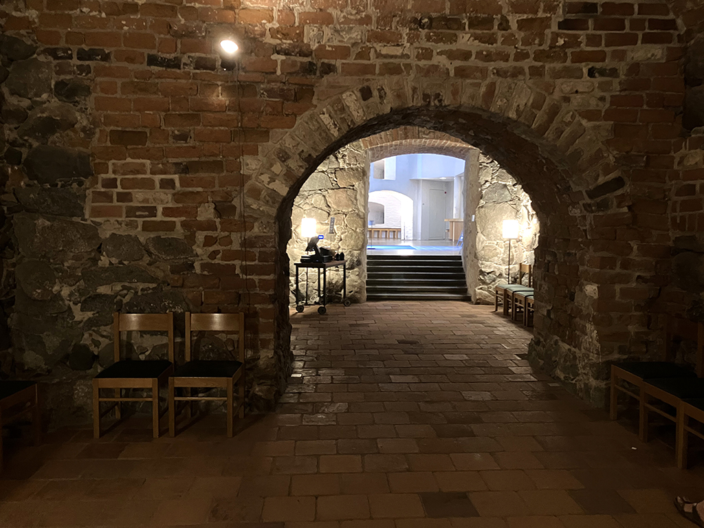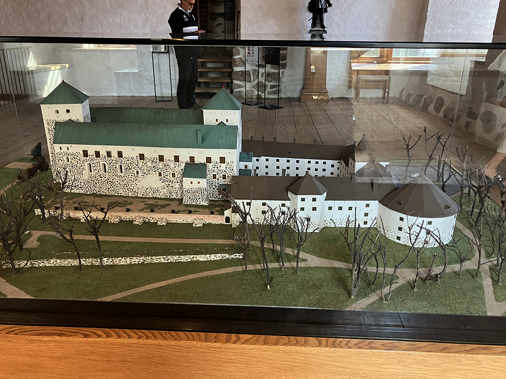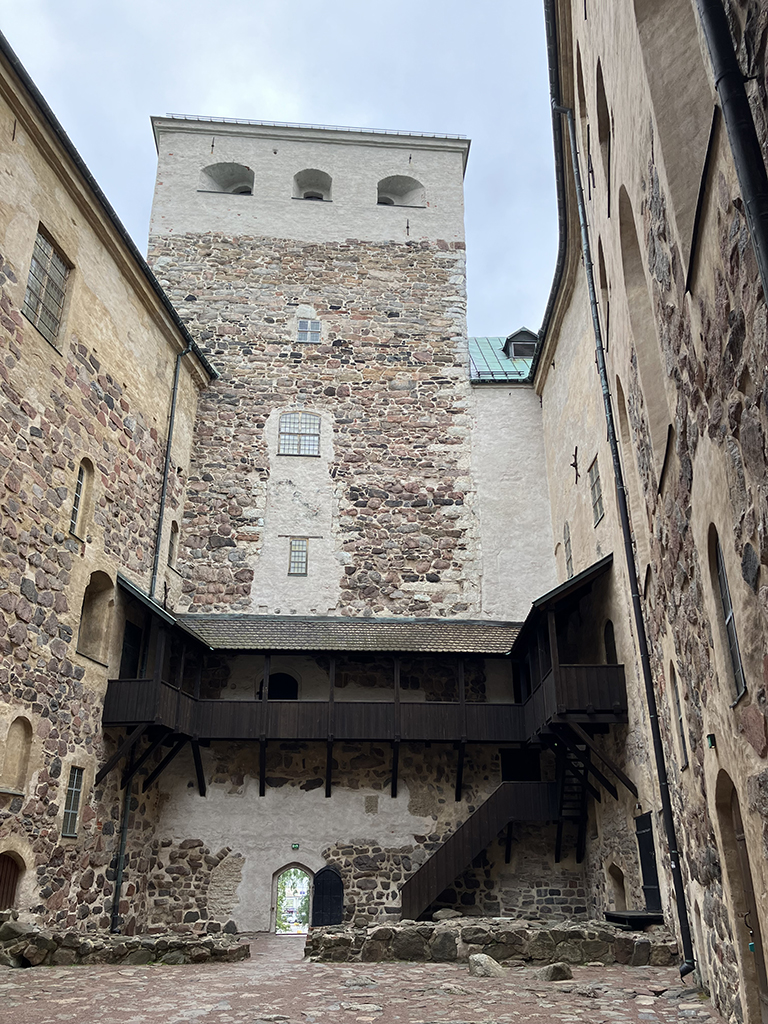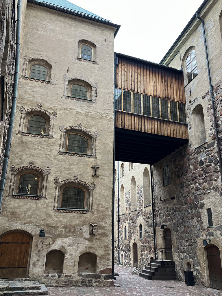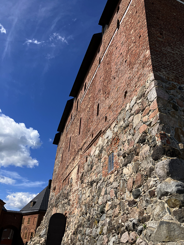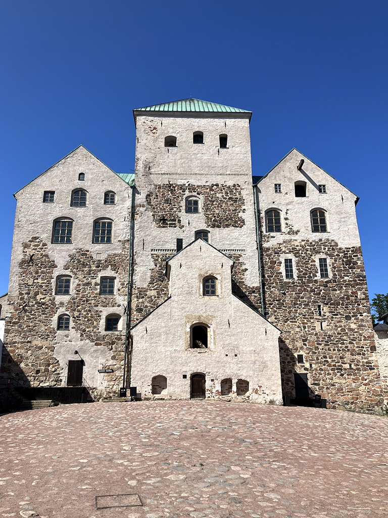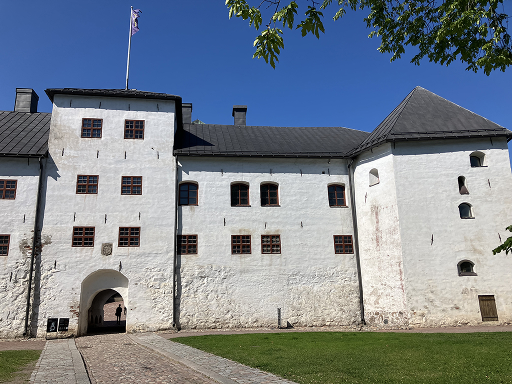 Deuxième ville de Finlande, ancienne capitale, Turku s’est construite le long des rives de l’Aurajoki. A son embouchure, sur un îlot, fut construit un camp fortifié en 1280 pour protéger la ville des incursions maritimes. Au fil du moyen-âge, le camp de bois se transforma en château de pierre, d’autant que les sédiments avaient relié l’îlot au continent. A la fin du XIIIème siècle, après que le sud de la Finlande fut rattaché à la Suède, le château principal fut terminé. Au cours du XVIème siècle, une partie fut ajoutée et dans le château principal, la mode Renaissance amena un étage supplémentaire avec des fenêtres.