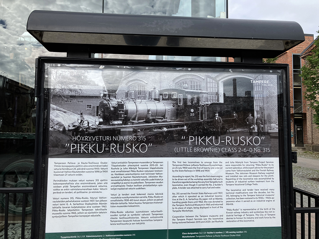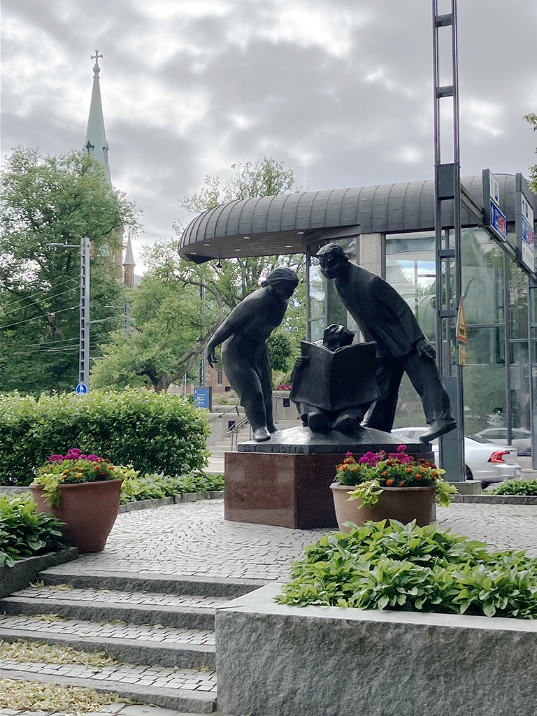 Quand j’ai appris l’existence de ce musée, j’étais très étonnée. Les relations Finno-Russes ont été très houleuses de tous temps, et le communisme n’a pas été bien vécu ici. Les relations sont toujours tendues de nos jours. Curieux, nous sommes allés le visiter. En fait, Tampere était une ville de métallurgie, avec un syndicat d’ouvriers. La Finlande était un duché de Russie mais éloigné des yeux et des oreilles de la puissante police du tsar Nicolas II. Le syndicat a accueilli Lénine et les révolutionnaires russes, dont Staline, dans leurs locaux. Quand après la révolution d’octobre 1917, Lénine prend le pouvoir, il signe les papiers d’indépendance de la Finlande, espérant et armant une révolution communiste. S’en suit une guerre civile meurtrière et fratricide entre communistes et non-communistes. Les communistes perdirent et les pertes humaines furent importantes. En octobre 1918, la Finlande opte pour un régime républicain. Le musée est installé dans l’ancien bâtiment du syndicat. Deux pièces pas très grandes mais avec plusieurs écrans présentant films ou diaporamas d’époque avec historique du contexte au moment de la révolution russe et biographie de Lénine. Bref, très intéressant et … ça change des églises non ? 😉