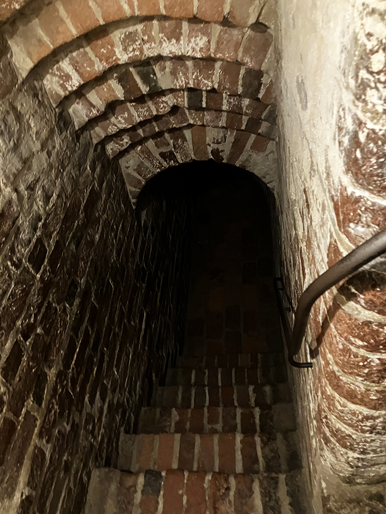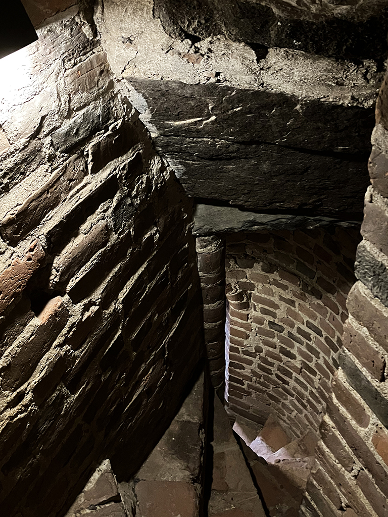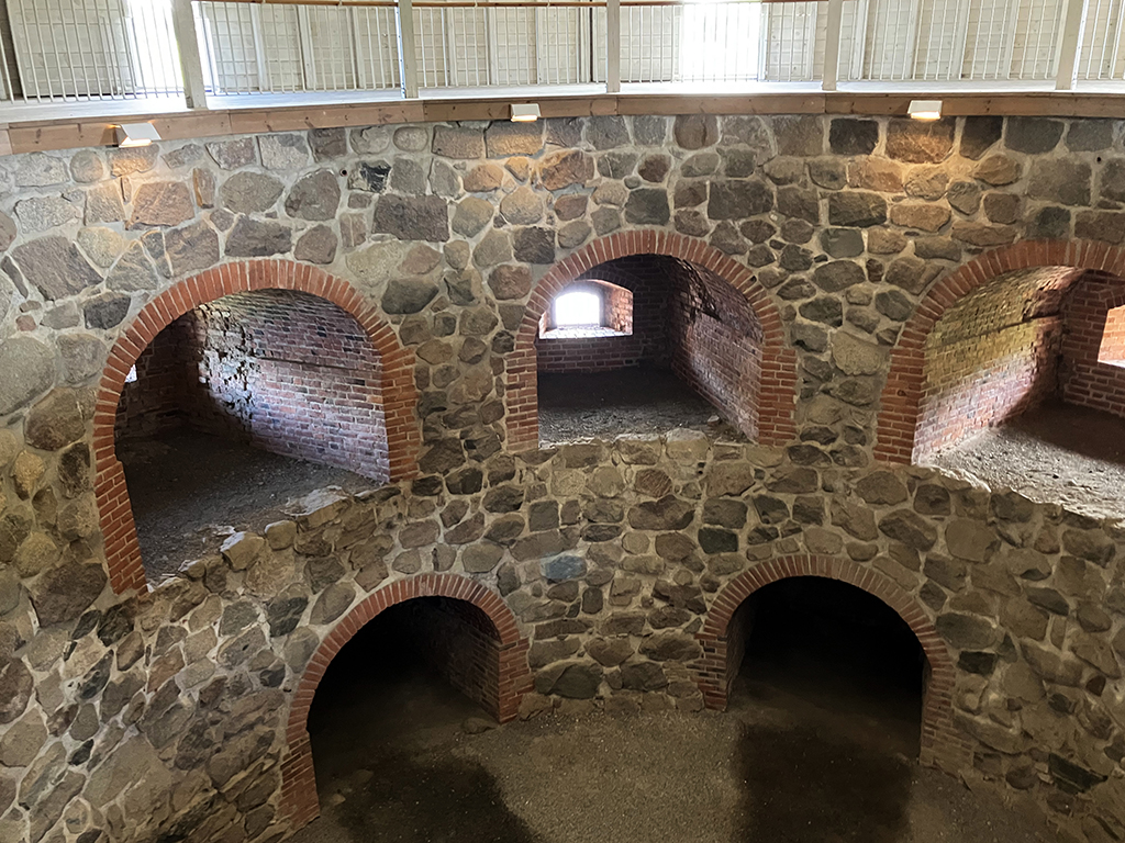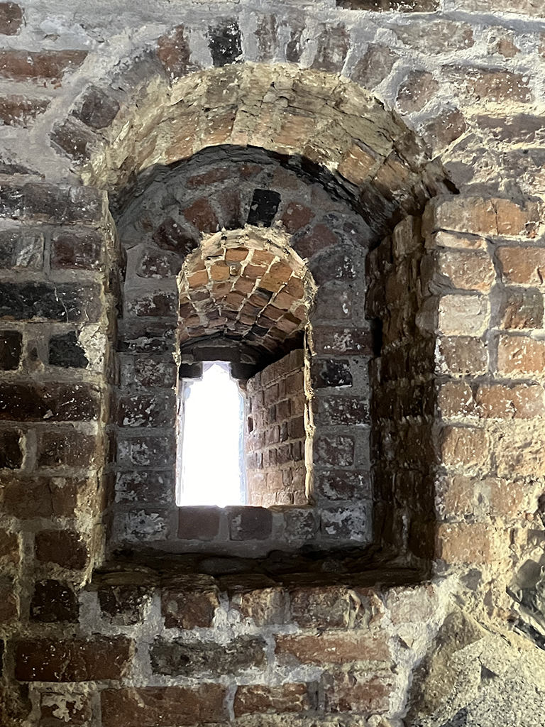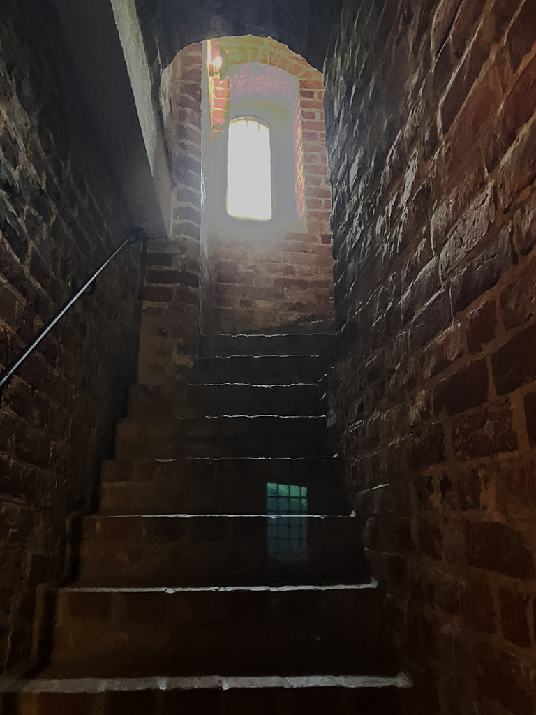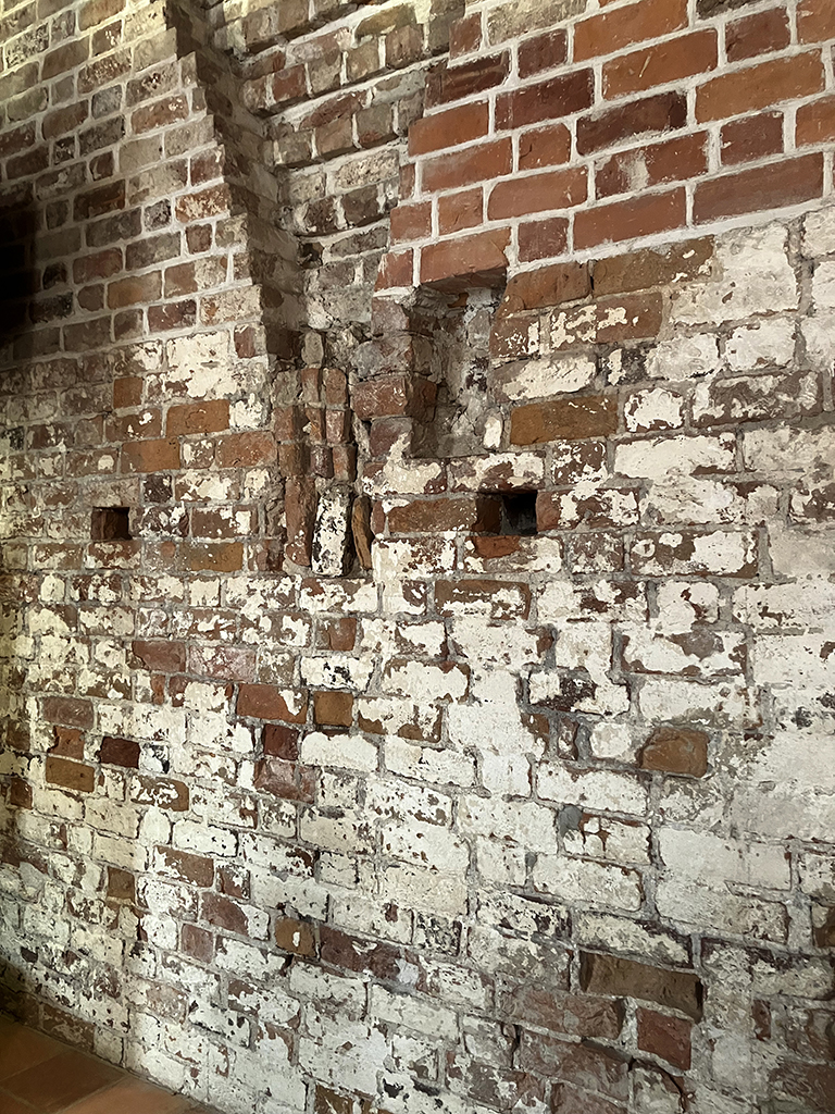 L’intérieur a été beaucoup changé lors de la transformation en prison. On peut tout de même voir qu’il y avait du chauffage central avec des bouches qui arrivaient à mi-hauteur des murs.