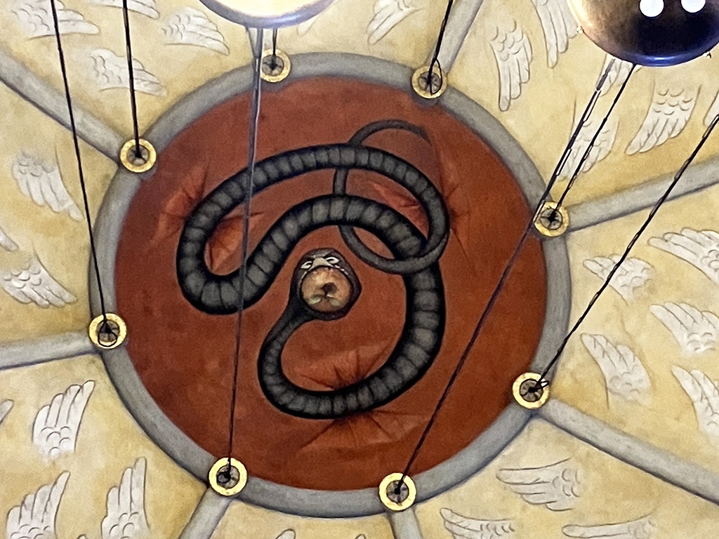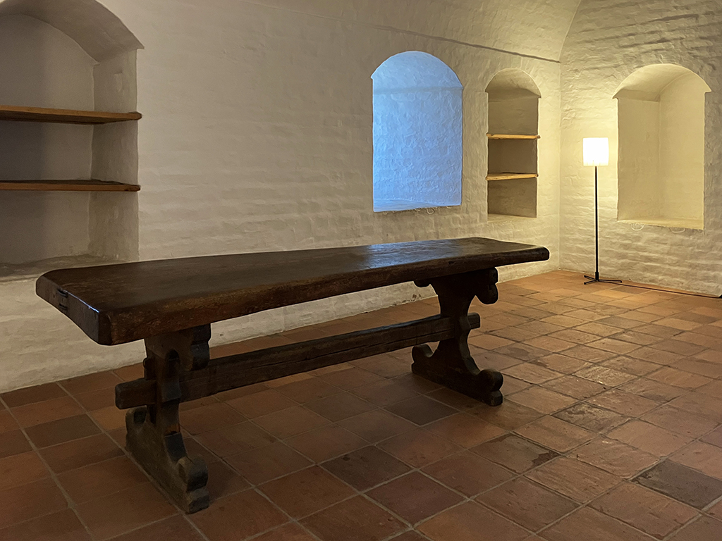 Sur les pieds des tables était gravé un nœud de Hermann pour assurer que la table serait toujours bien garnie.
