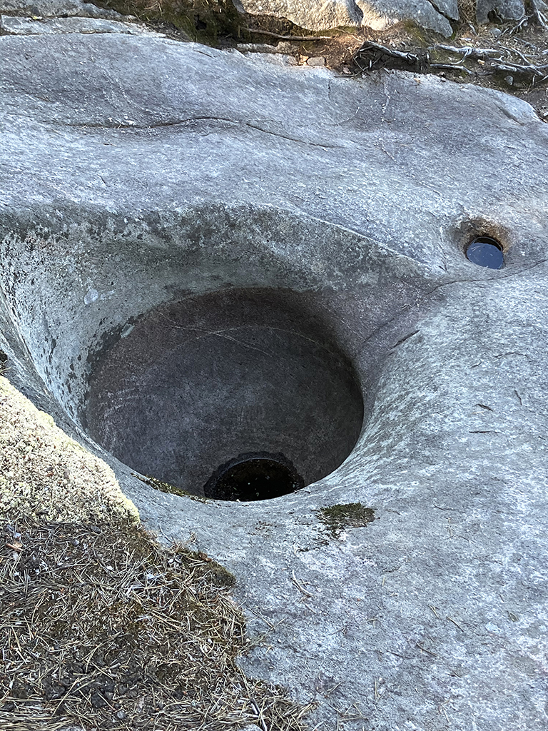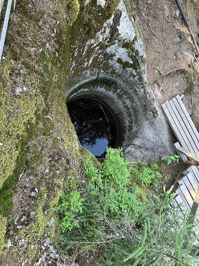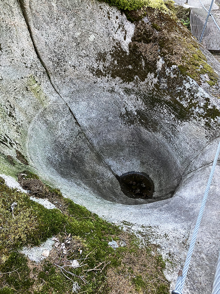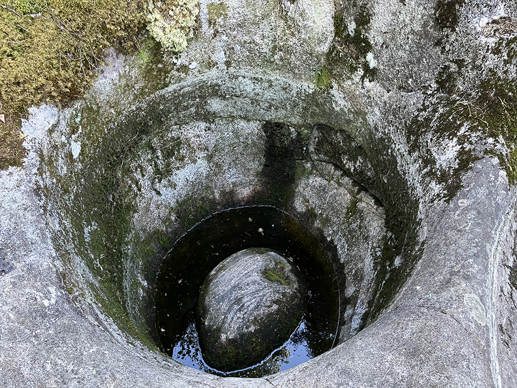 Je ne sais plus trop où nous avons trouvé l’indication de ce site. Il était présenté comme la plus grande concentration de « marmites géantes ». Nous en avions vu dans l’Ain et c’était spectaculaire. Le plan montrait une grande boucle à parcourir pour les voir toutes. Nous décidons de faire une randonnée. Nous avions imaginé un parcours de plusieurs kilomètres. En fait, au pire, nous avons parcouru moins de deux kilomètres et les marmites étaient vraiment petites et sans grand intérêt. Tant pis, la forêt était belle , la balade agréable.