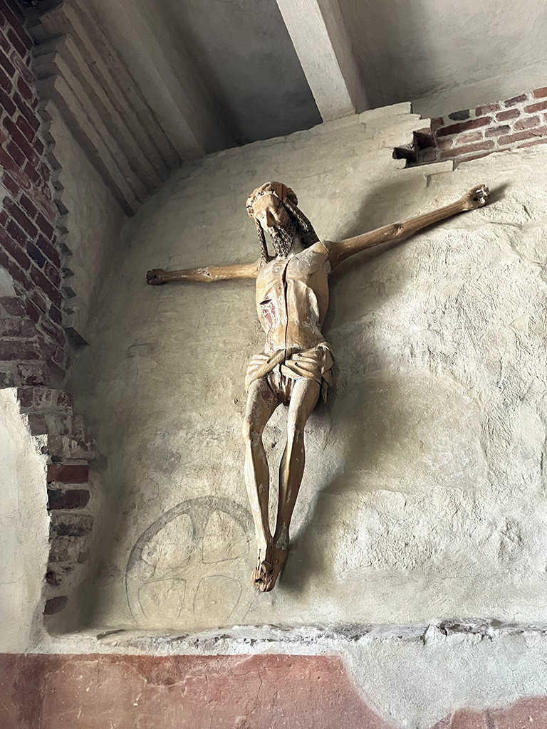La statuaire en Finlande est en boisJésus sur croix noire en souvenir de la peste noire Salle de réceptionCellule