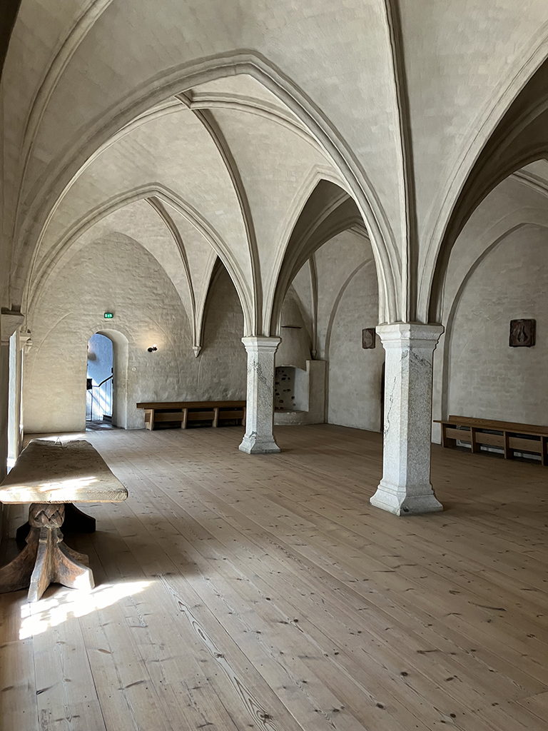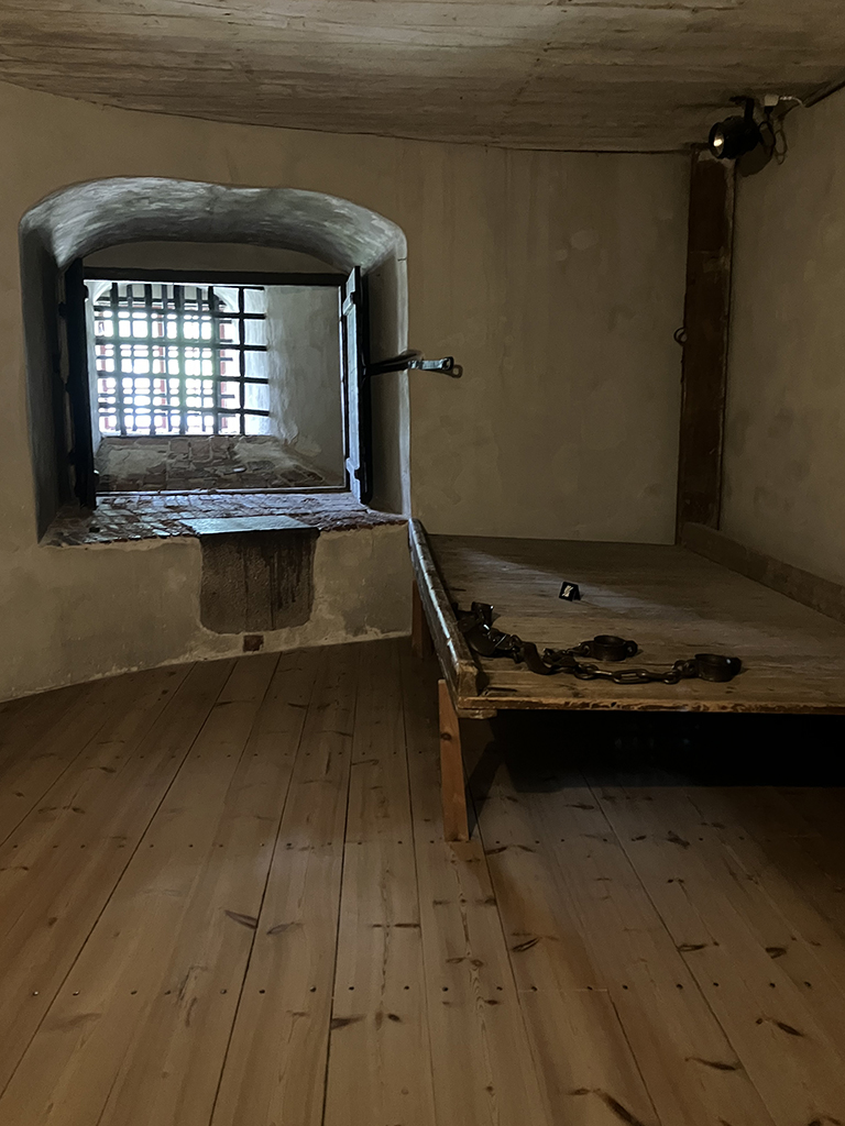 Le château fut tour à tour forteresse de défense, palais résidentiel, centre administratif, grenier et garnison. Il a souffert durant la guerre et a subi un incendie. Les restaurations ne se font pas comme en France. Les murs sont « moyen-âge » mais le reste est moderne. Ce n’est pas vilain, mais un peu déconcertant.