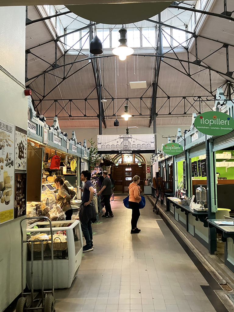Ensuite direction les halles. Bâtiment en briques qui ressemble étonnamment à celui d’Helsinki, il est agencé de la même manière. Nous y déjeunons au comptoir d’une poissonnerie. Excellent !