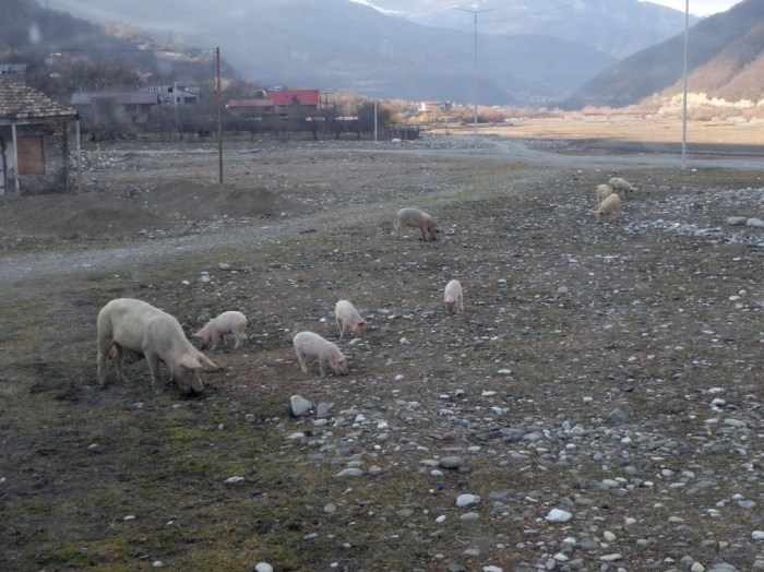 Avec tout cela, nous sommes arrivés bien plus tard que prévu à Vladikavkaz, mais nous avons réussi à trouver un distributeur de roubles et, avec l’aide d’un policier, les cartes sim pour les téléphones. Et oui, sans internet, on est un peu perdu …