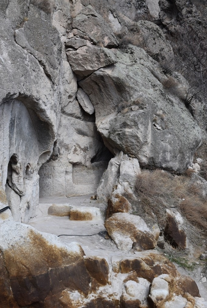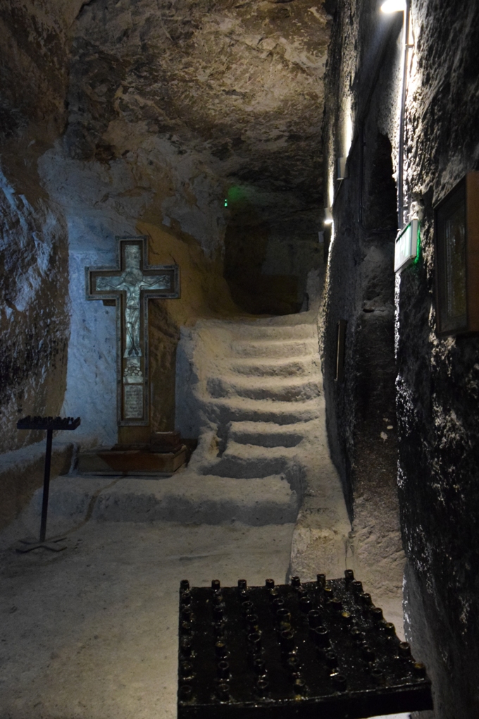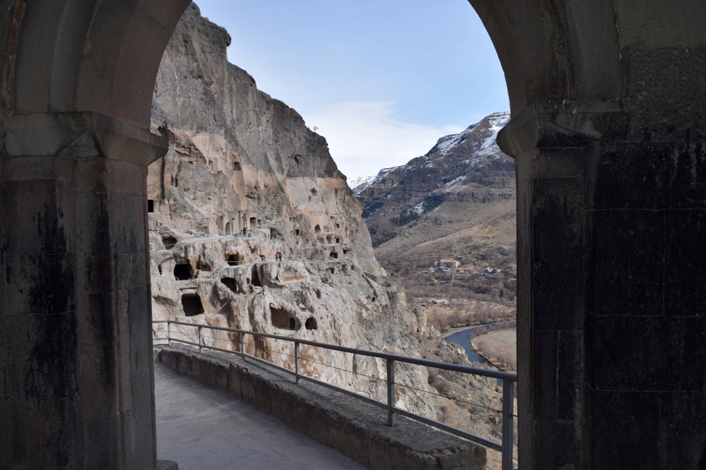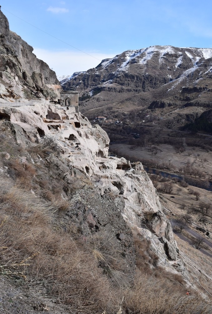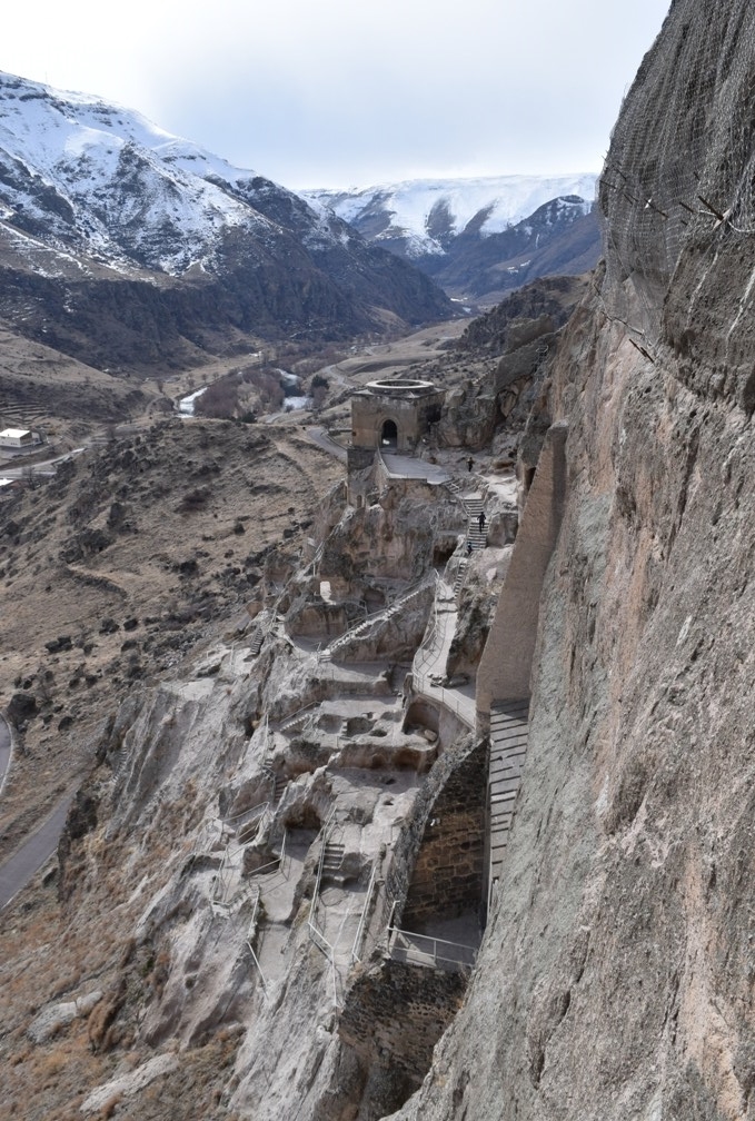 La cité date du 12ème siècle. Elle a été construite pour résister aux mongols sur ordre de Tamar, une femme qui avait le titre de Roi. 6000 pièces, treize niveaux, des celliers, un réservoir d’eau qui se remplissait pas différence de pression à partir d’un torrent, des bibliothèques, des magasins, des marchés …. Une vraie ville. 50 000 personnes pouvaient y vivre en cas d’attaque. Il reste moins d’un tiers de la cité suite à un tremblement de terre. Tout n’est pas visitable car des galeries ne sont pas sûres et une partie est toujours occupée par des moines. Ce qui reste forme tout de même un beau réseau, mais il ne faut pas être claustrophobe. Les habitants n’étaient ni grands, ni gros ! Nous étions pliés en deux dans les tunnels et par moment, limite de se mettre de profil !