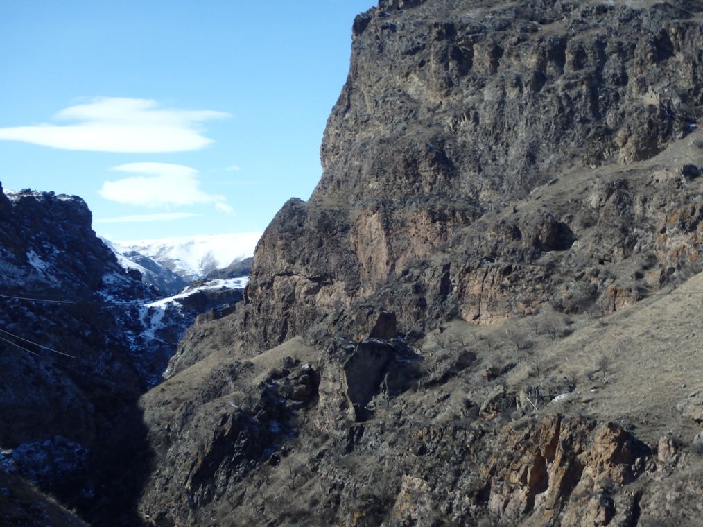 Après une nuit un peu bruyante, nous avons le droit à un réveil sous la neige. Rien de bien sérieux, 5cm de poudreuse qui continue à tomber doucement. Après avoir dégagé les panneaux solaires, nous décidons de tenter tout de même l’ascension vers Vardzia. Nous avons eu raison car dans la vallée suivante et en altitude, il n’y avait plus trace d’un flocon. Le paysage est fantastique. La nature à l’état pur dans une grande majorité des espaces parcourus. Nous avions noté plein d’horaires pour retrouver des paysages sur la dashcam, mais on avait oublié de remettre la carte mémoire, alors raté !