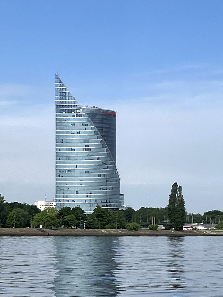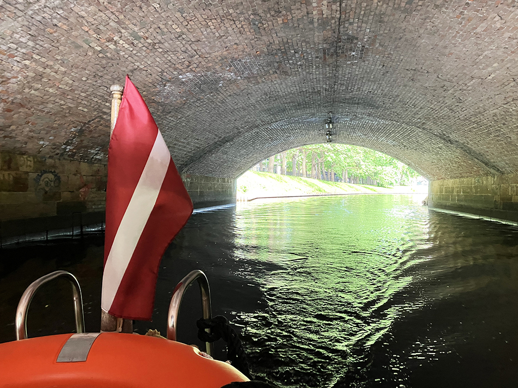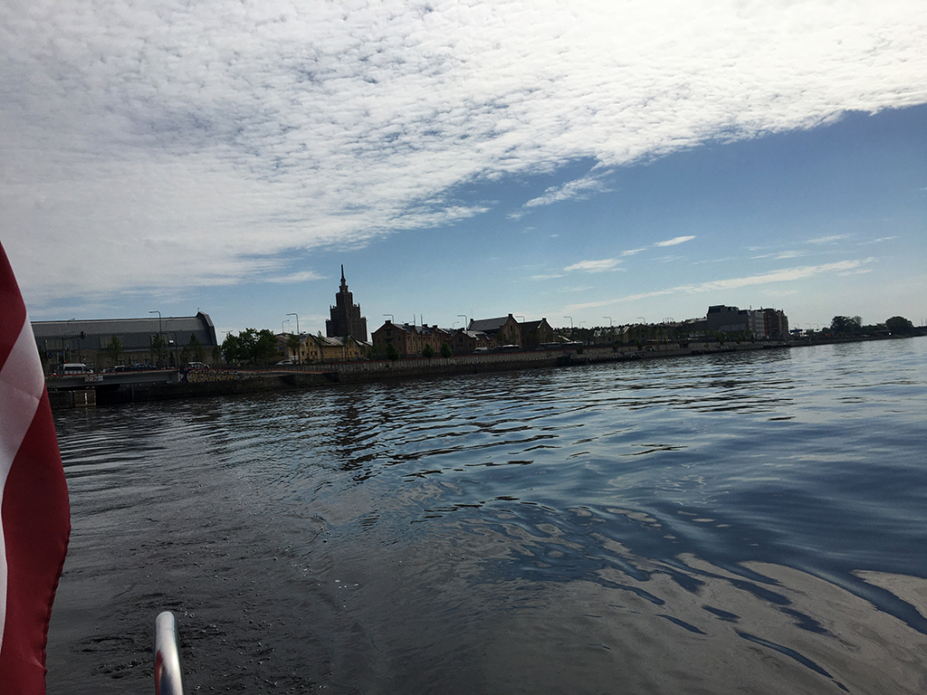 Nous avons commencé par une balade en bateau, pour profiter d’un point de vue particulier et d’un audioguide en français. L’histoire de Riga, qui existe depuis le XIème siècle, est comme l’histoire de la Lettonie et des pays baltes, très mouvementée. Wikipédia vous en apprendra toutes les subtilités, car je ne vais pas faire de cours d’histoire, je ne domine pas assez mon clavier pour écrire un bouquin 😉 Un point tout de même, la Lettonie a eu indépendance et reconnaissance des nations en 1918. Elle fut envahie par l’URSS en 1940 et devint une république soviétique. Néanmoins, le régime qui gouvernait avant l’invasion, demeura le représentant légitime de la Lettonie auprès des instance internationales. A la chute de l’URSS, en 1991, la Lettonie retrouva son indépendance. Néanmoins, la Russie actuelle, estime que le gouvernement légitime est celui qui existait lors de la république soviétique. D’où les vues de la Russie sur les états baltes, et la nécessité de protéger ces territoires . Fin de l’aparté, maintenant, des images !