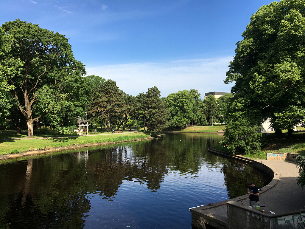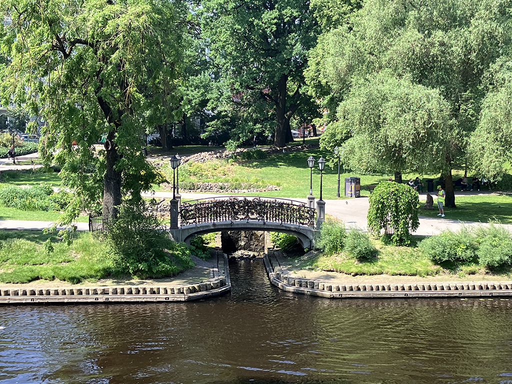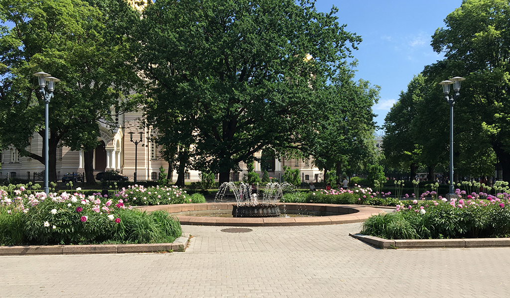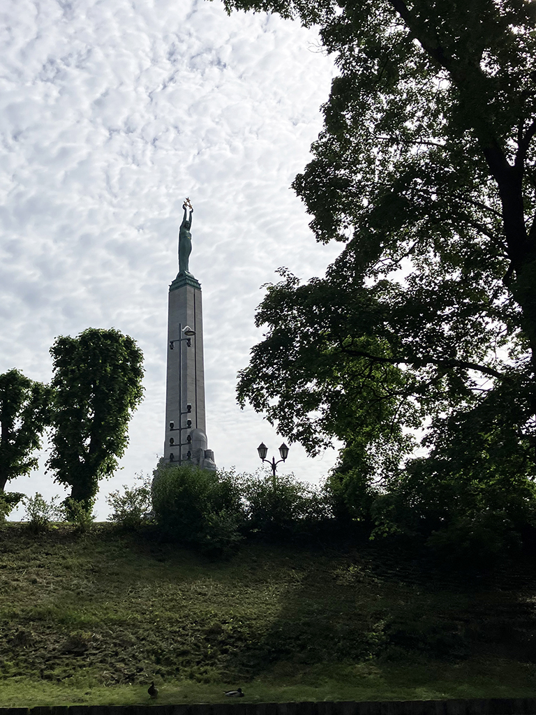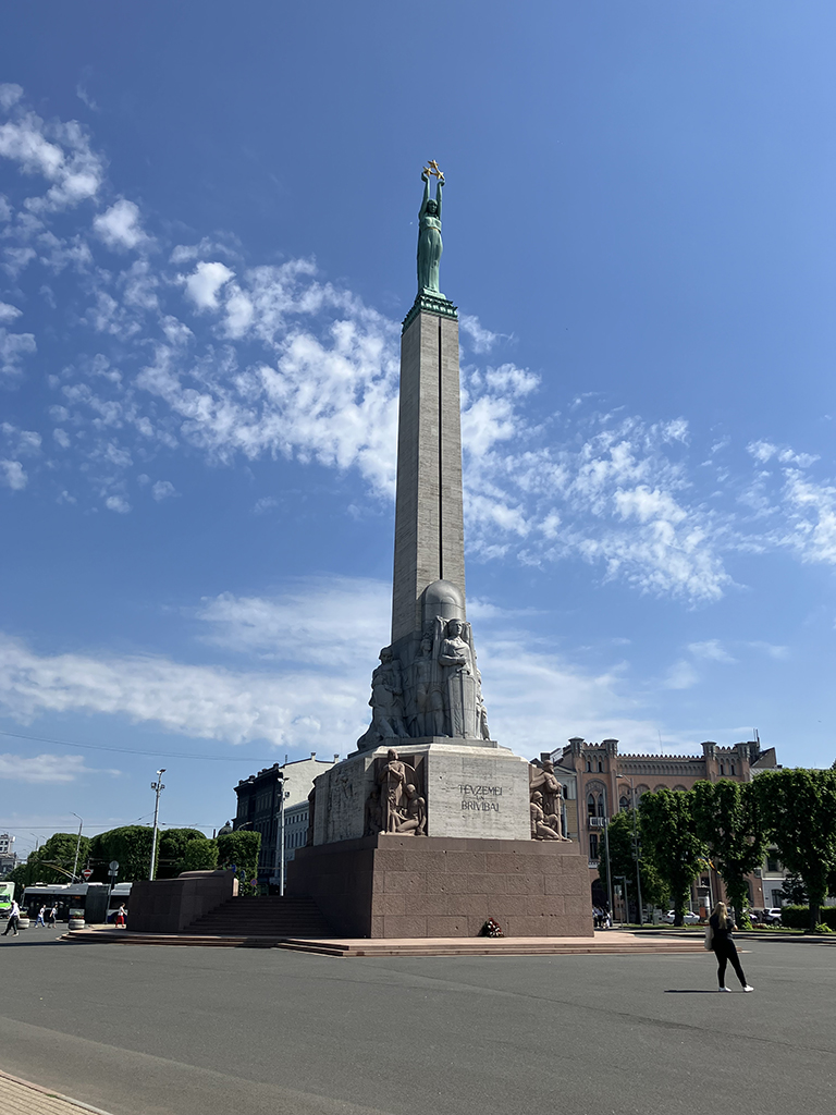 En se dirigeant vers la vieille ville, nous passons devant « Milda, » le monument de la Liberté. A son sommet, 3 étoiles, qui représentent les trois provinces. Une vue du parc adjacent à la place de la statue.