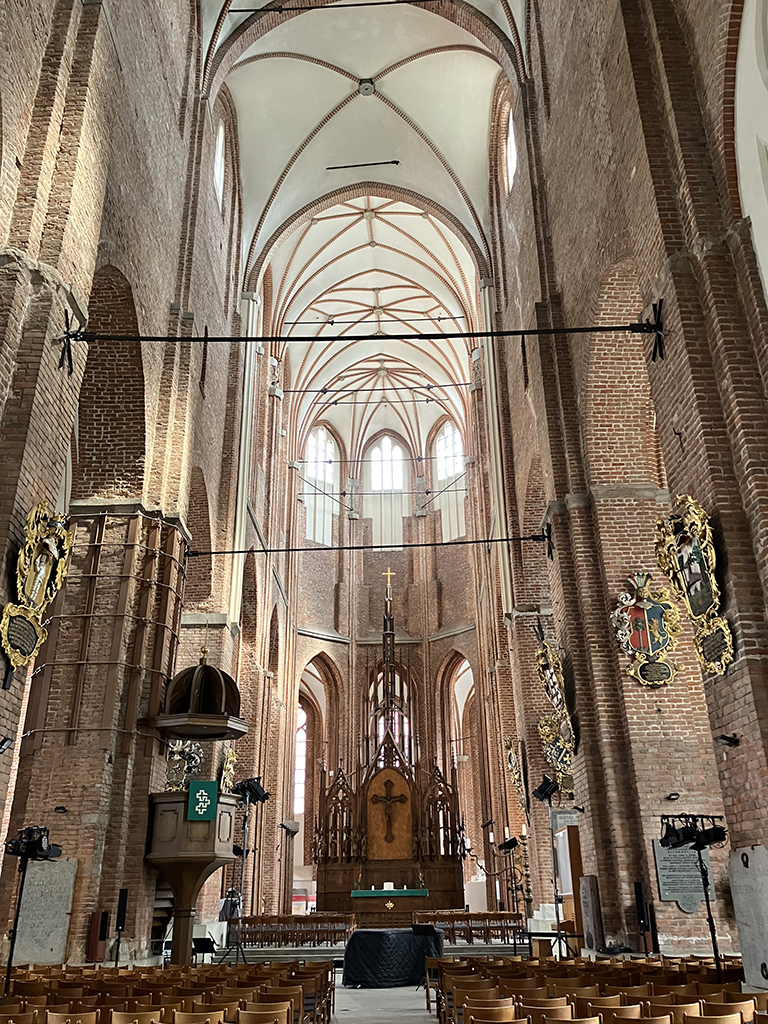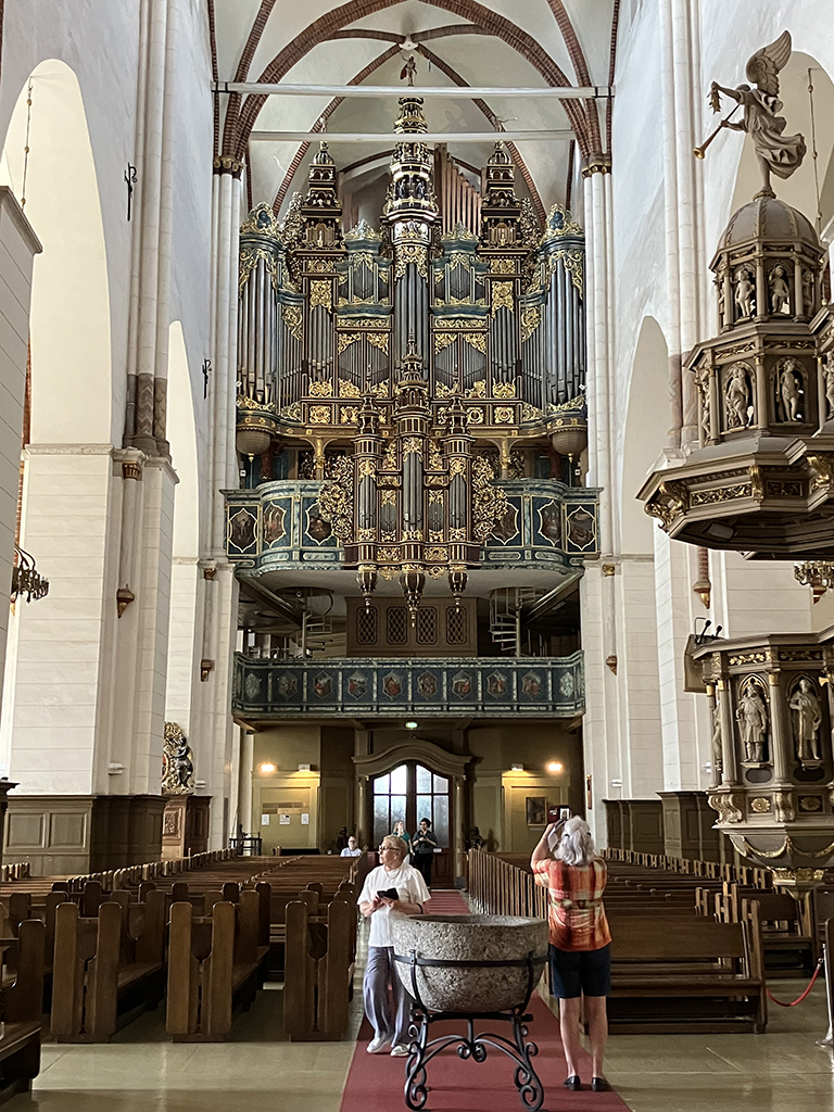 Le ciel se couvre, nous nous rendons à la cathédrale Dome, luthérienne. Eglise catholique principale de Livonie, elle devient luthérienne en 1561. Sa grande particularité est son orgue magnifique, considéré comme le plus vieux et plus grand du monde. 6718 pipes, 25m de haut, 11 de large et 10 de profondeur.