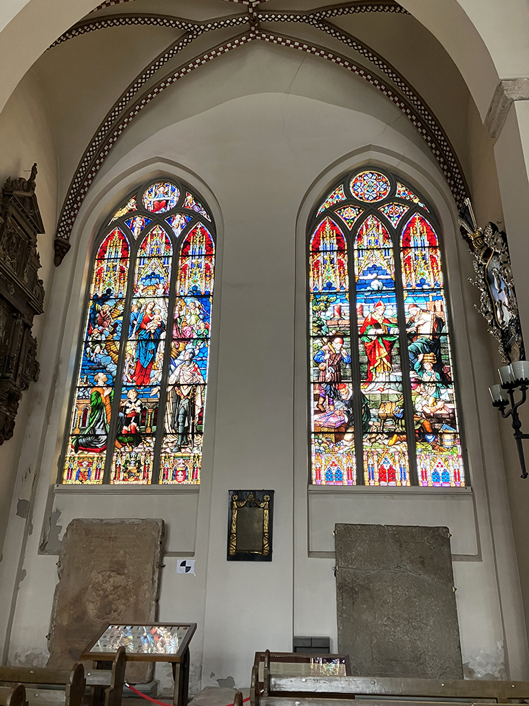 Bref très impressionnant. Mais, avec la chance qui nous caractérise, l’organiste accordait l’orgue pour le concert du soir. Avez-vous assisté à cela ? 6718 sons à vérifier ? Une torture auditive. Le cloître adjacent offrait un peu de répit mais nous avons trouvé qu’il n’était pas bien entretenu. Dommage, en général, j’adore les cloîtres et leurs arcades 😉