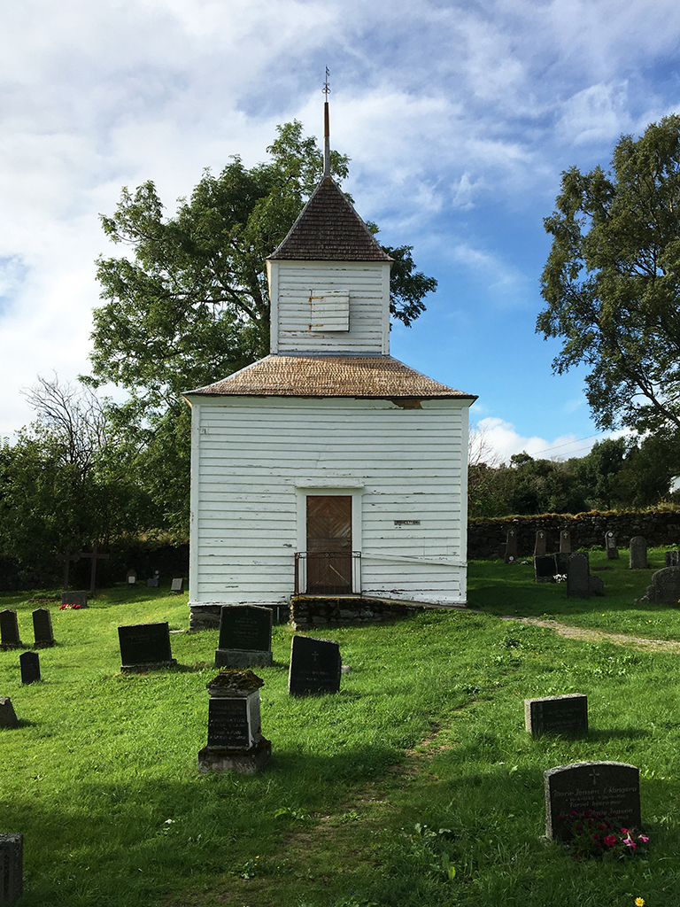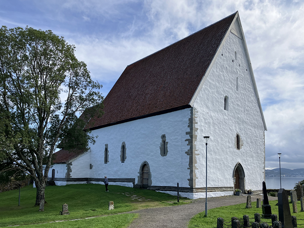 Nous avons passé la nuit sur le parking de cette église, à l’écart de la ville. Le lendemain matin, nous avons constaté que le drapeau de Norvège avait été monté mais qu’il était en berne. Quelque temps plus tard, le pasteur nous a gentiment demandé de quitter le parking car il attendait beaucoup de monde pour des obsèques. Evidemment, nous avons libéré la place rapidement.
