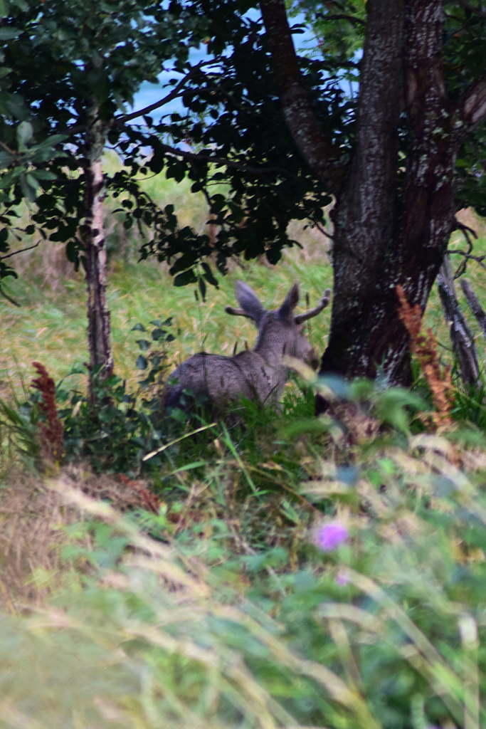 1, c’est moi qui ai aperçu un dos et une tête d’une grosse bestiole qui m’a semblé être un élan. C’était peu probable car on était en périphérie de la ville ! En plus, c’est le hasard, j’étais sortie du camion en discutant au téléphone avec ma fille !