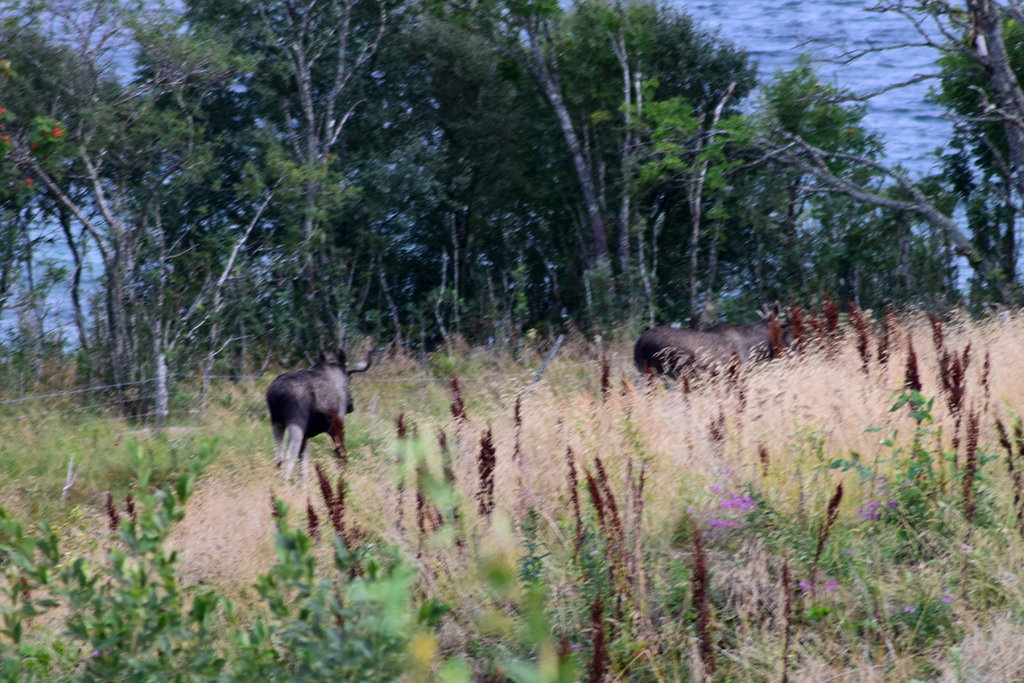 2 Jeff est parti rapidement avec son appareil pour vérifier et a pu les trouver. Je suis heureuse qu’il les ait vus de près ! Depuis le début de notre voyage, les élans, on ne les avaient vus que sur les panneaux et les magnets ! Ils ont détalé très vite mais la rencontre était quand même magique pour Jeff !