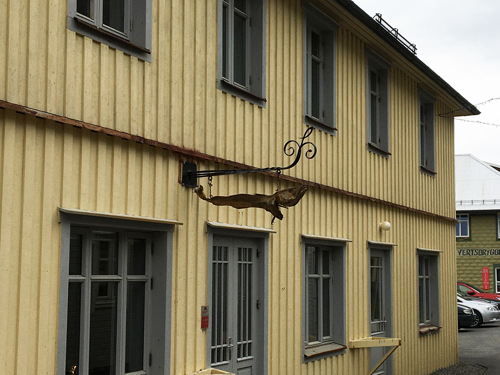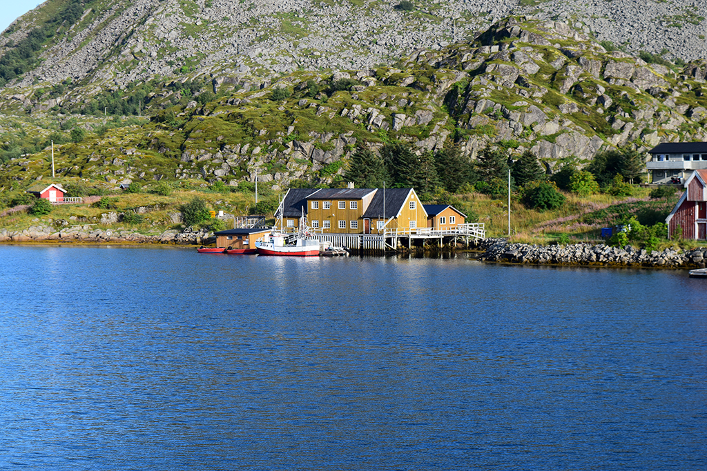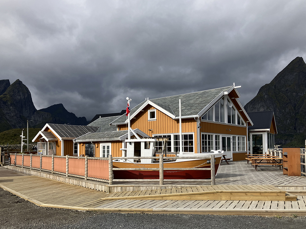 Au musée viking, une employée d’origine mexicaine parlant très bien français nous a incité à faire escale sur l’île de Sakrisoy pour une boutique et un restaurant de spécialités norvégiennes. Très bel endroit, très cher, mais avec des produits typiques. Nous y avons fait quelques emplettes raisonnables et avons testé au restaurant le tataki de baleine. Je comprend pourquoi les Japonais tuent autant de baleines. Sa chair ressemble à du boeuf mais encore plus tendre. Un régal. Nous limiterons tout de même notre consommation car c’est aussi encourager la chasse.
