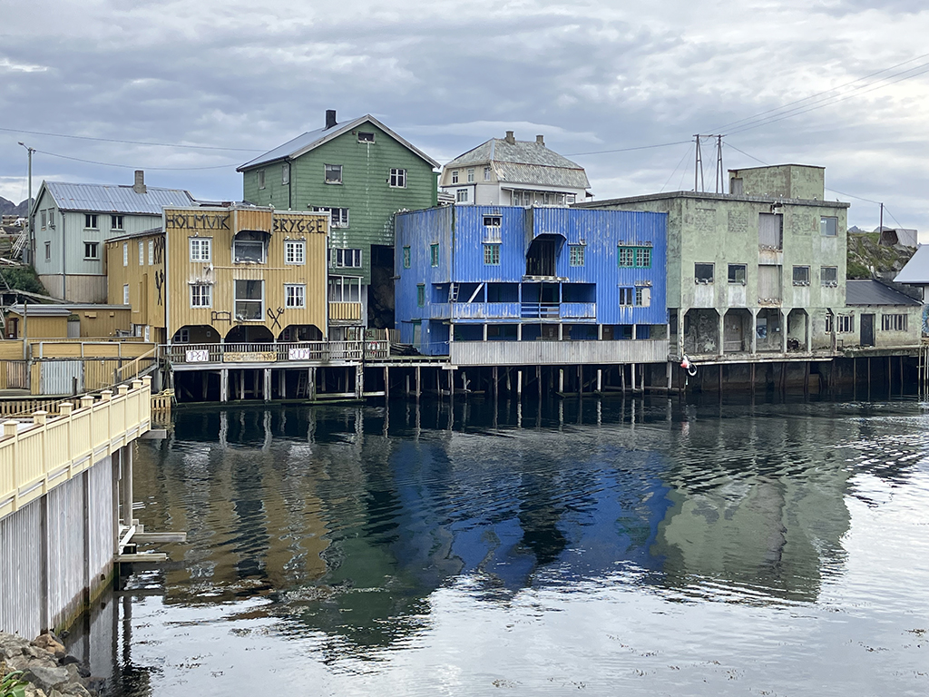 Maintenant, on passe de l’île d’Andoya à celle de Langoya pour aller voir Nyksund. Ce détour nous a été conseillé par le surveillant du parking à Narvik. Ce petit village de pêcheurs est resté figé jusque dans les années 1960. Les fermetures de la boulangerie et de la poste ont sonné le glas de ce village. Les habitants ont déserté et une énorme tempête en 1975 a eu raison des derniers résistants. Le village fut abandonné aux moutons et aux vandales. Tout aurait pu s’arrêter là, mais un allemand amoureux du coin commença la rénovation d’un bâtiment, puis des artistes vinrent s’y installer et petit à petit, le village reprit vie. Bon, c’est pas la foule non plus ! 35 en été et 5 en hiver mais maintenant, le village est dans les guides touristiques et il y a du passage. Les rénovations ont été faites en gardant au maximum l’esprit et l’authenticité de ce port de pêche.