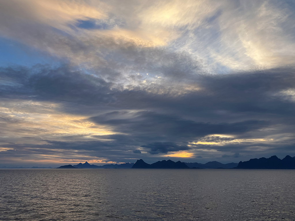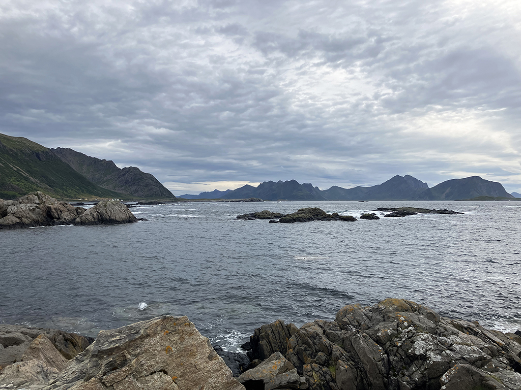 Nous allons bénéficier d’une belle lumière pour longer la côte sud des Lofoten. Mais nous ne vagabonderons pas trop car ce soir, au nord de l’île d’Andoya, le ciel sera clair et l’activité solaire suffisante pour espérer voir des aurores boréales. Alors, après avoir admiré la côte, nous filerons à Andenès pour nous installer pour la nuit.