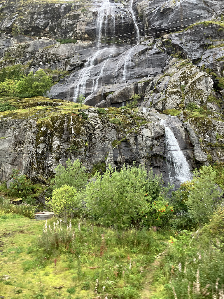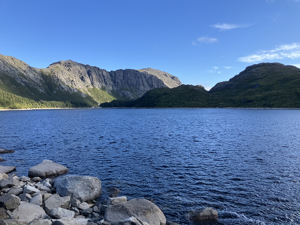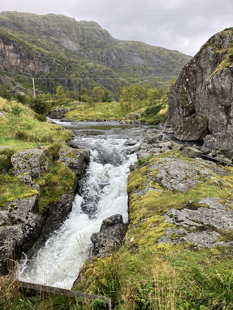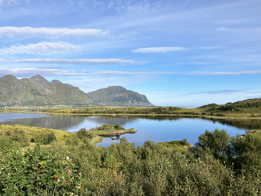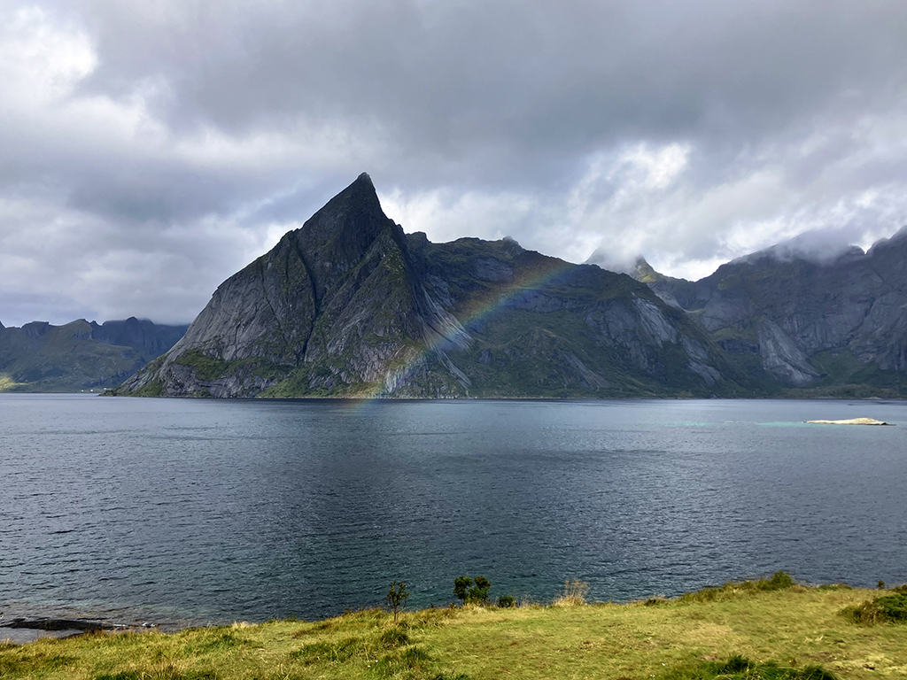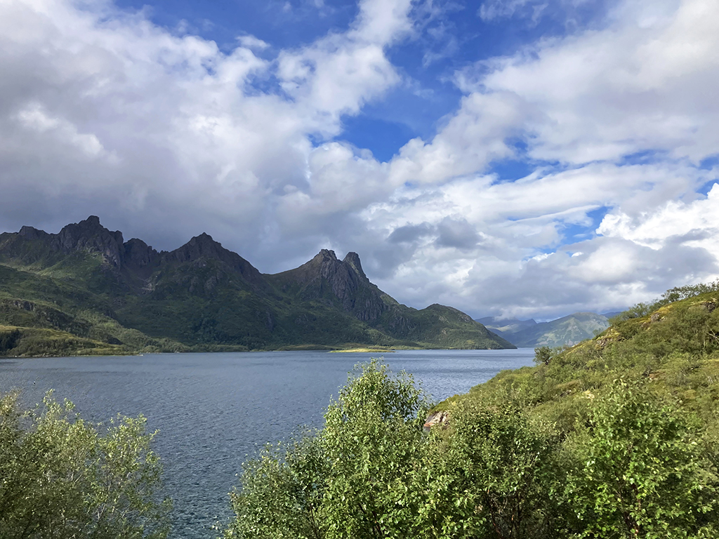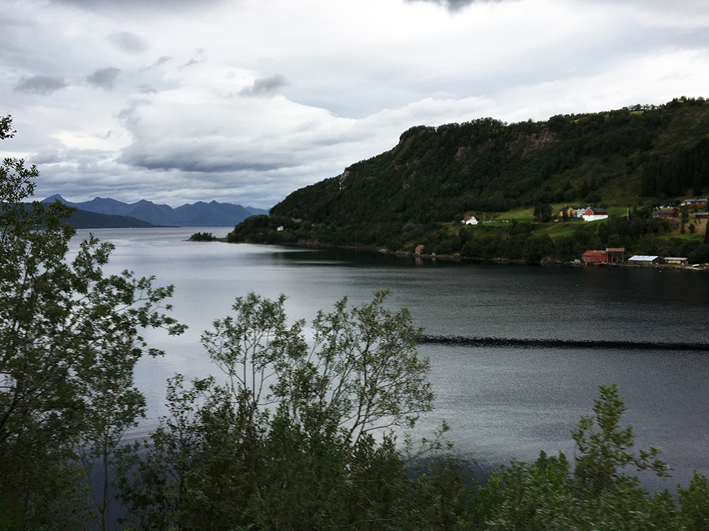 Voilà encore des photos de fjords, de montagnes, de maisons colorées. Peut-être en avez-vous assez. Quand nous serons dans le sud, il y aura plus de villes, de monuments. Cela fait cinq semaines que nous sommes en Norvège et chaque jour, nous nous émerveillons devant les paysages. Il faut dire que nous devenons un peu sauvages 😉