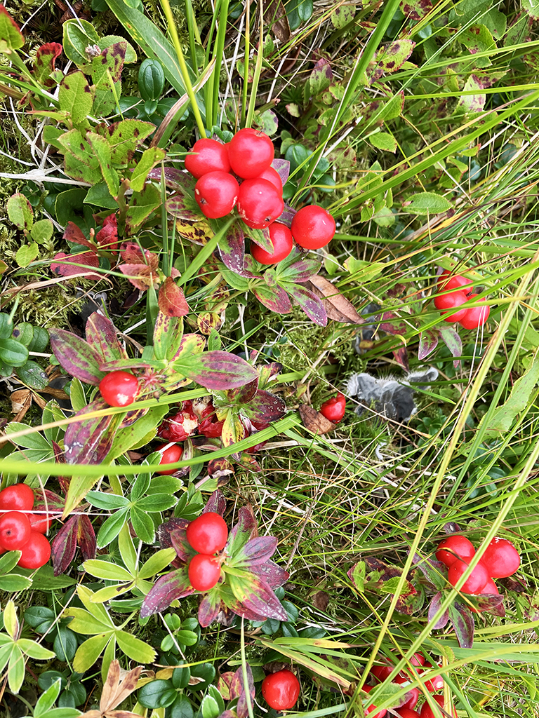 L’automne s’installe déjà. Il y a encore beaucoup de baies, dont je ne connais pas le nom. Cela donne une jolie couleur sur les pentes.