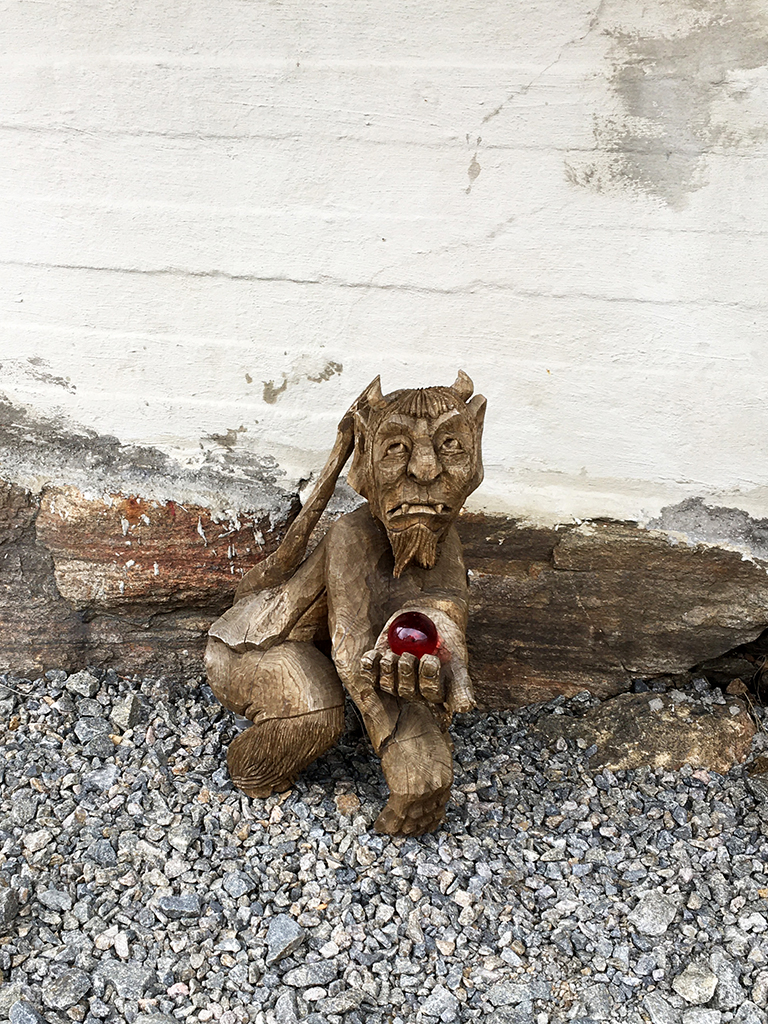 Nous avons passé la nuit sur le parking de cette église, à l’écart de la ville. Le lendemain matin, nous avons constaté que le drapeau de Norvège avait été monté mais qu’il était en berne. Quelque temps plus tard, le pasteur nous a gentiment demandé de quitter le parking car il attendait beaucoup de monde pour des obsèques. Evidemment, nous avons libéré la place rapidement.