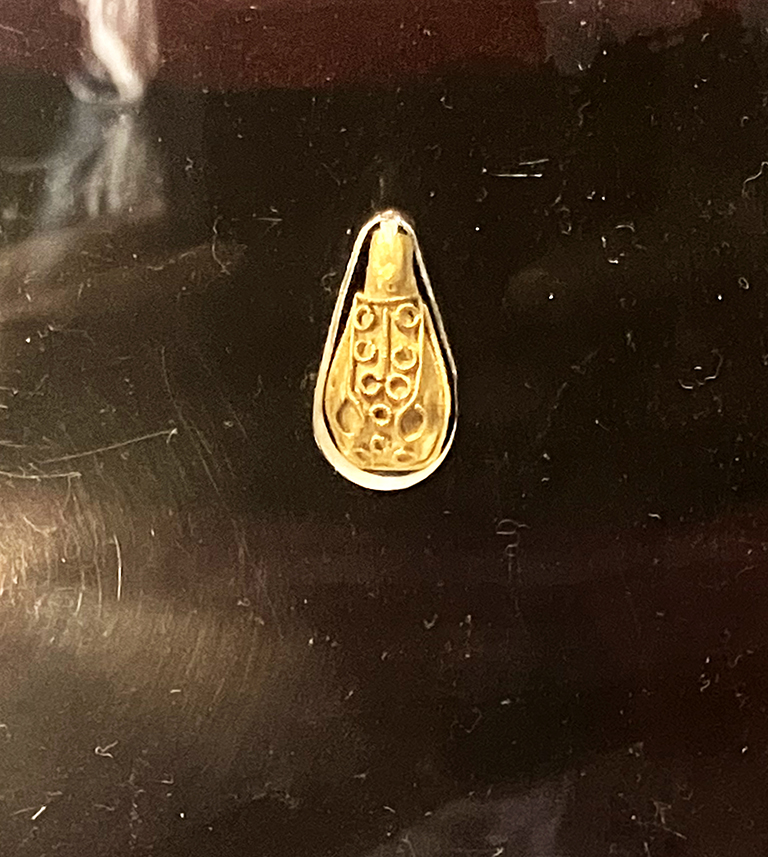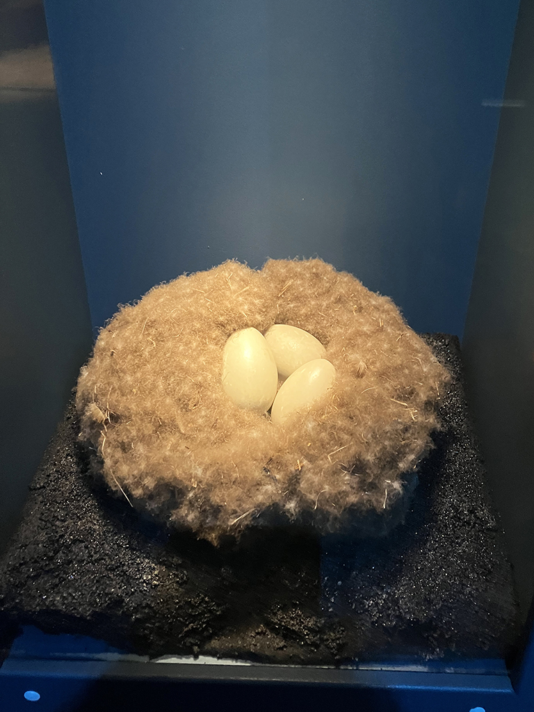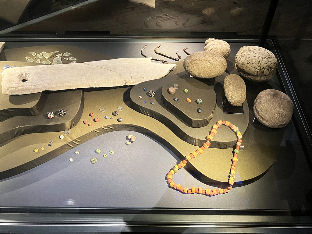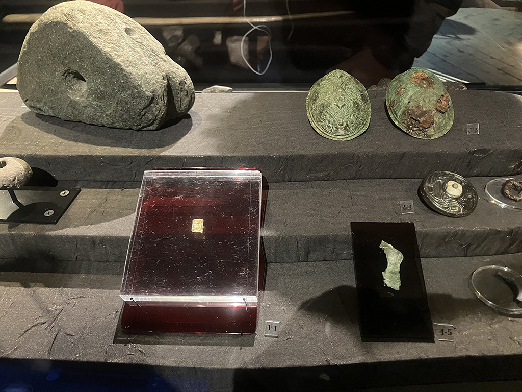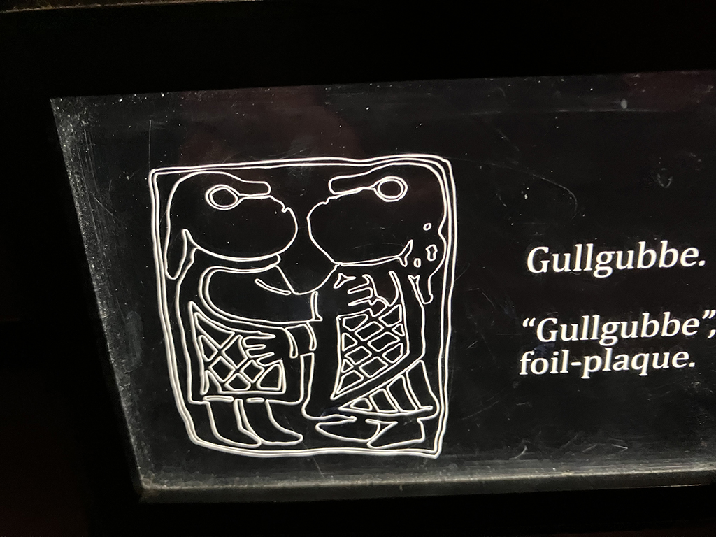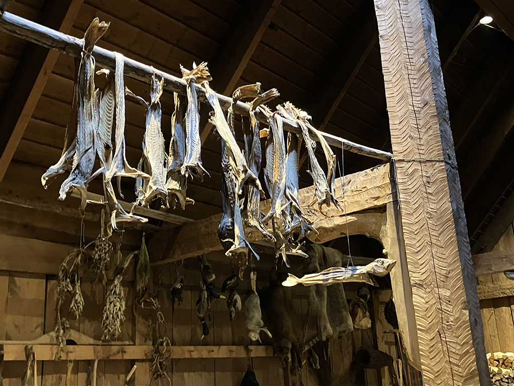 Cette petite plaquette d’or était enterrée sous les poteaux principaux pour assurer la prospérité à tousPanneau de décoration en arêtes et os de poissonLe duvet d’eider encore ramassé sur l’île de Vega