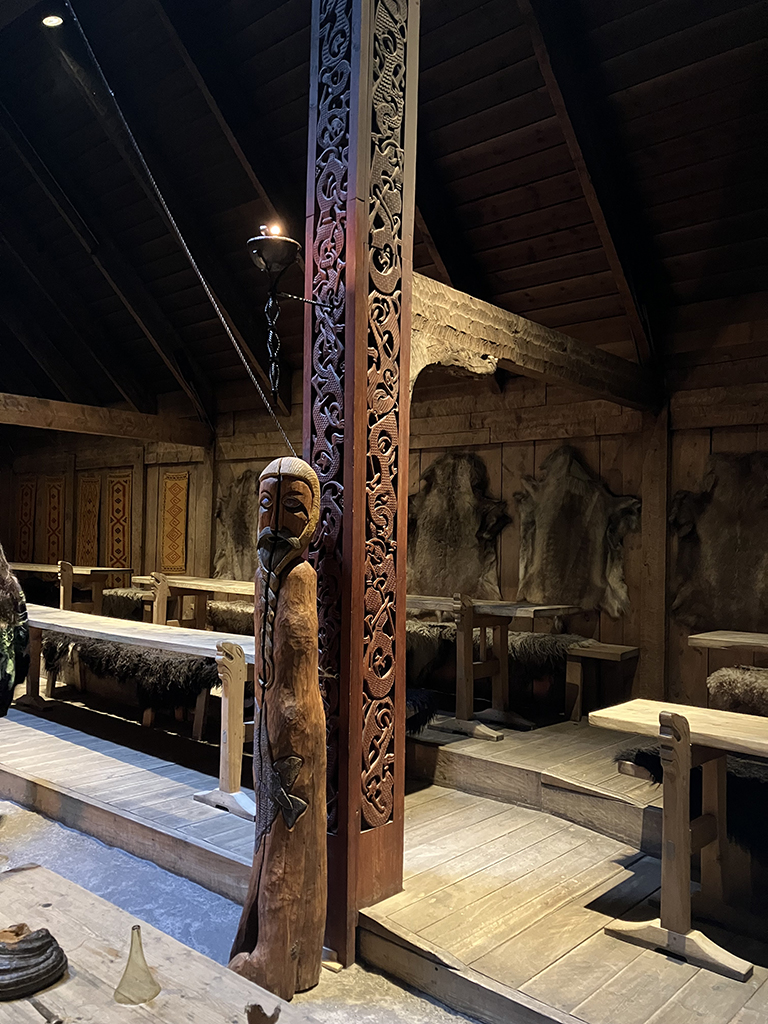 Nous partons pour Borg, lieu où un agriculteur a mis à l’air des traces archéologiques. Des fouilles ont permis de découvrir les fondations d’une ferme seigneuriale. A côté de cet endroit a été construite une réplique de ce bâtiment. Avec l’aide d’archéologues de toute la Scandinavie, les savoir-faire des Vikings ont été retrouvés . Dans ce musée, on trouve des artefacts issus des fouilles.