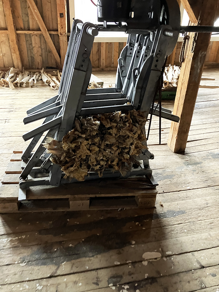 Après avoir été attrapés, les cabillauds sont éviscérés, étêtés, écaillés. Ils sont attachés par deux par la queues et sont suspendus sur les « échafauds », les séchoirs à poissons. Les têtes sont mises à sécher également car elles partent au Nigéria où les habitants les utilisent pour faire des bouillons pimentés. Les poissons entiers sont destinés à l’Italie. 90% des cabillauds séchés partent là-bas. Les cabillauds salés (morue) sont séchés dans une installation à air conditionnée. La morue salée part en Amérique du sud et au Portugal. Pour le reste de l’Europe, c’est le cabillaud surgelé sur les bateaux-usines qui est préféré.